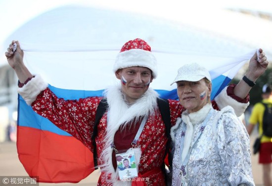 2018年7月1日,俄罗斯,2018俄罗斯世界杯1/8决赛,西班牙Vs俄罗斯。球迷集聚助威。