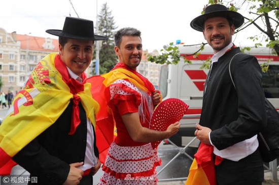 2018年6月25日,俄罗斯加里宁格勒,2018俄罗斯世界杯小组赛B组,西班牙Vs摩洛哥,球迷到场助威。