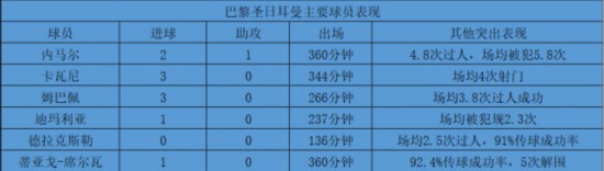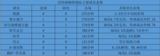 热刺主要球员表现,合计贡献7球2助 从单纯的数据上来说,巴黎和热刺的球员都非常亮眼。巴黎前场三叉戟内马尔、姆巴佩和卡瓦尼,目前都是巴西、法国和乌拉圭队的头号射手,而蒂亚戈-席尔瓦和迪玛利亚这另外两名重点球员,更是各自球队的绝对主力。 热刺方面,哈里-凯恩打进6球领跑射手榜,其火爆程度不言而喻,而特里皮尔也打上了英格兰国家队主力,阿里和代尔也都有很好的出场机会。另一方面,在比利时国家队中虽然穆萨-登贝莱失去了位置,但维尔通亨和阿尔德韦德维尔的表现也愈发出色,在剩余8强中,热刺的绝对主力数目达到了4名,与巴黎相比也毫不逊色。 除了在目前的射手榜上凯恩、姆巴佩和卡瓦尼都在前十行列,在其他方面两队球员的表现同样可圈可点。比如说在防守端,蒂亚戈-席尔瓦场均解围5次,1.3次封堵对方射门,传球成功率高达92.3%,是不折不扣核心中卫的表现,而热刺阵中的D-桑切斯虽然遭到了英格兰淘汰,但他却用打满4场比赛,场均6.3次解围,2次拦截,仅仅犯规1.1次的稳定表现告诉世界,他也不是人们印象中那个时常短路的莽撞小伙了。