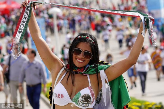 穿着bra看世界杯真是耀眼!美女球迷胸衣款式多多。