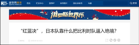 那篇球评中有这么一段话: 面对实力、名气皆不如自己的日本队,在顿河上航行的“巨型航母”比利时队几乎翻船,卢卡库们的世界杯之梦差一点就被埋葬在罗斯托夫体育场。 报道还提及,新华社其他多篇评论如实反映了日本队这4年中的进步。 报道最后还引用了一位不具名的中国网友的话: 我多少有点理解日本文化中总是宣扬的“魂”是什么了……日本队堪称“亚洲之光”。我们也应该尽快找到属于我们自己的“魂”。 对于中国球迷的肯定,日本网友也不吝赞美之词。本次选择的评论都是点赞数前15中的评论,大部分人都对中国球迷慷慨赞赏日本队表示感谢。