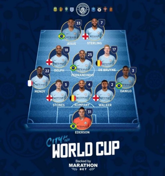 腾讯体育7月5日讯 俄罗斯世界杯已经进行到八强阶段,虽然德国、阿根廷、西班牙等夺冠热门纷纷出局,但人们惊奇地发现,本届世界杯的赢家不只是英格兰或者法国,还有英超冠军曼城,因为留在世界杯八强的曼城球员依然还能凑成一套首发阵容。