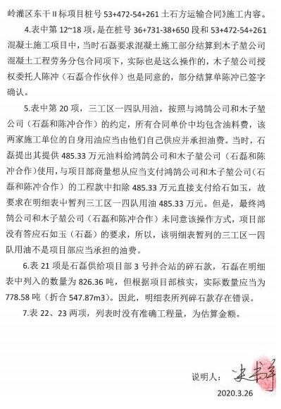 法学专家:石如玉、海南水安公司索要中水六局的施工款项没有合法依据 文/李海波 2018年1月10日,海口居民石如玉与中国水利水电第六工程局有限公司(中水六局)签订《海南省红岭灌区工程东干渠土建施工第II标自卸汽车租赁合同》。约定将5辆运输能力20-22m3自卸汽车出租给中水六局。中水六局现场代表为生产经理高伟,并约定车次数量及每车次运输距离需中水六局现场代表高伟签字确认生效。合同履行完毕后,双方于同年7月1日最后结算自卸汽车租赁费。 1月22日,中水六局与石如玉签订《海南省红岭灌区东干渠土建施工第II标段隧洞暗涵段土石方开挖回填工程劳务分包合同》,约定将该标段土石方开挖回填工程劳务分包给石如玉,承包范围为2#隧洞暗涵段土石方开挖回填;合同价款暂定总价金额2001342元。并约定中水六局派驻代表为崔国印,其权限包括审批本合同工程进度、文件均需中水六局派驻现场代表签名后并加盖签证、预结算。 3月11日, 石如玉与中水六局签订《混凝土泵车租赁合同》,约定中水六局租赁石如玉混凝土泵车用于施工;并约定中水六局现场代表为书记丁文。合同履行完毕后,经石如玉与项目部进行了结算。 12月29日,石如玉为董事长的水安公司与中水六局签订《海南红岭灌区东干II标项目桩号36+731-38+650段石方运输合同》,约定中水六局将位于海南省定安县的红岭灌区工程东干渠土建施工第II标段工程的石方交给水安公司自卸汽车运输至指定区域并按要求堆放;水安公司提供挖掘机(或液压破碎锤)、自卸汽车;该合同没有约定中水六局现场代表。截止2019年6月29日,合同项下运输工程履行完毕。期间双方对变更后050号《石方运输合同》进行结算,截止4月自卸汽车运输费(沟槽石方开挖)工程量为84310.88m3,自卸汽车运输费(临时道路)工程量为2889m3,结算金额为3923955元。沟槽石方开挖工程量为60000m3,同时备注“因施工尚未全部完工,先暂定60000m3,最终以实际方量结算”。 2019年1月9日,水安公司与中水六局签订《海南红岭灌区东干II标项目桩号53+472-54+261 段土石方运输合同》。 约定由水安公司为中水六局位于海南省定安县的红岭灌区工程东干渠土建施工第II标段工程进行取土场装车、自卸汽车运输至指定工作面,暂定合同总价1085600元。该合同也没有约定中水六局现场代表。 石如玉的父亲石磊雇用被告中水六局现场施工人员刁占华在现场管理机械、设备,运输渣土、土方、石头的汽车数量,刁占华用“女神故里”微信号在工程工作群进行工程日报。每天报的出渣量是是大致的预估,按一车20方计量的。截止2019年6月29日,刁占华在工作群上报出渣量共计165479m3。 石如玉、水安公司与中水六局在对案涉工程进行结算时,均是制作正式书面机械租赁费结算单、机械租赁使用时长签证单、工程结算单、完成工程量签证单,由石如玉签名、水安公司盖章,中水六局的项目经理、生产经理崔国印、蔡洪亮、蔺新龙、丁文胜,以及中水六局的工程部、财务部、安全部、质检部、设备部、商务部等人员签字,最后加盖中水六局的项目章,双方才完成结算。 正式的工程结算单,有双方人员签字 微信中的《对账明细表》多处有暂估字样 2019年8月24日,商务副经理史书宇通过微信向石磊微信发送了《对账明细表》,该《对账明细表》上没有石如玉签名和水安公司盖章,没有中水六局的项目经理、生产经理崔国印、蔡洪亮、蔺新龙、丁文胜以及中水六局的工程部、财务部、安全部、质检部、设备部、商务部等人员签字,也没加盖中水六局的项目章。 2020年3月26日,史书宇出具《关于<截止至 2019.7.31日石如玉(海南水安建筑工程有限公司)对账明细表>的说明》,阐明当时是石磊为了向项目部请款,为反映其实施工作的大致金额,统计了此表,表中已付金额财务数据是石磊提供的,因为不是最终的对账结算单,该明细表既不是结算单也不是财务部门出具的对账单,不具有对账、结算的效力。 截止2020年1月19日,中水六局向石如玉、水安公司款合计人民币11744300元。 中水六局认为已经支付完工程款,而石如玉、水安公司认为中水六局要按照史书宇微信发送的《对账明细表》结算。2021年5月15日,石如玉和水安公司向法院起诉中水六局,要求支付海南省红岭灌区东干渠施工款项人民币7969935元及仲裁费63383元、保全费5000元、保全保险费13426.09元。 2021年11月1日,定安县人民法院作出民事判决:一、被告中国水利水电第六工程局有限公司在本判决生效之日起十五日内向原告石如玉、海南水安建筑工程有限公司支付工程施工各种费用合计人民币2451089元;二、被告中国水利水电第六工程局有限公司在本判决生效之日起十五日内向原告石如玉、海南水安建筑工程有限公司退还质保金105600元;三、驳回原告石如玉、海南水安建筑工程有限公司的其他诉讼请求。 判决后,石如玉、水安公司及中水六局均提起了上诉。 近日来自中国人民大学、中国社会科学院、北京大学、中国政法大学、首都经贸大学的5位知名法学教授对此案进行了论证。法学专家一致认为:石如玉、水安公司的请求没有合法依据。 一是史书宇通过微信发送的《对账明细表》并非职务行为,该《对账明细表》不具有对账结算效力,不能作为涉案工程结算的依据。在中水六局与石如玉、水安公司签订的案涉相关合同中,约定了中水