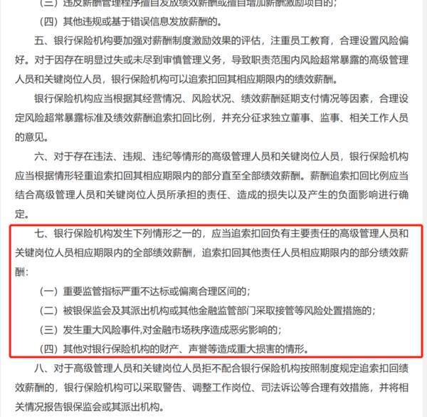 原标题:银行副行长月收入仅几百 旷工补贴家用被开除!什么情况? 绩效工资延期三年再发,部分已发绩效还要追回。 近期某支行副行长因绩效薪酬延迟支付,每月到手仅几百元,拟外出打工,被单位以旷工15天为由辞退。该行副行长索要延期未发的绩效工资,法院却表示“不予支持”。 副行长每月工资仅几百元 旷工补贴家用被开除 近日,裁判文书网披露了一份有关辽宁建平农商行劳动争议的一审民事判决书:该行前任某支行副行长王某因绩效薪酬延期支付,每月仅能拿到几百元,准备外出打工,被单位以旷工15天为由辞退。 图片来源:裁判文书网 判决书中提到,原告王某自2012年起在该银行工作,先后从事柜员、机关科员、会计、支行副行长等职务。2021年6月起,依据《辽宁省农村信用社绩效薪酬延期支付及追索扣回管理指导意见(试行)》和《辽宁建平农村商业银行股份有限公司绩效薪酬延期支付及追索扣回暂行办法(修订)》的规定,对王某当年绩效薪酬试行部分延期支付,首次兑付时间应为2022年末。 王某则表示,因绩效工资延期发放,自己每月实际发放工资只有几百元,因此他准备外出打工,却被以旷工15天为由辞退,延期未发的绩效工资也未支付。 最终判决结果认定,公司根据相关规章制度对王某采取惩罚性措施,不违反《中华人民共和国劳动法》的规定和《劳动合同》的约定。因此对王某提出兑付36092.36元绩效工资的请求不予支持。 银行延发、索回绩效薪酬成常态 因薪酬延期和绩效工资追索扣回而产生的劳动争议并非仅此一例。 今年5月公布的哈尔滨某行向前行长追索70万余元绩效薪酬的案例同样涉及商业银行薪酬监管、追索扣回的相关政策。不同的是,针对该案,法院以银行在双方终止劳动关系后,才通知对郑某进行绩效追索,缺乏依据,同时案件已超过仲裁时效为由,没有支持银行退回绩效工资的诉求。 近年来,“反向讨薪”逐渐成为各家银行薪酬政策及考评激励中的一项重要手段。 从2022年财报看,多数银行均已完成绩效薪酬延期支付相关制度。其中,中国银行、交通银行、华夏银行等将按照承担重大风险和风险管控职责人员绩效薪酬的40%以上进行延期支付;民生银行、广发银行等绩效薪酬延期支付比例不低于50%。 广发银行高管绩效薪酬按50%实行延期支付 图片来源:广发银行2022年年度报告 具体案例方面,年报显示,2022年,招商银行执行绩效薪酬追索扣回员工共2876人,追索扣回绩效薪酬总金额5824万元;渤海银行追索370人绩效薪酬共计1760万元;九江银行共追索绩效薪酬达163万元。工商银行、交通银行、光大银行等均提及追索扣回相应绩效薪酬。 针对中高层及关键岗位人员 谈及当前司法实践中由“反向讨薪”引发的各类案例,某接近监管的市场人士表示,延期支付和绩效追回政策并非针对项目中所有的相关人员,主要面向高管、部门负责人等中高层员工,对基层员工并无要求。“也是担心基层网点和一般普通员工扣除绩效之后的工资可能会比较低,日常生活开销没办法满足。” 针对辽宁建平农商行副行长旷工补贴家用的情况,该人士表示,作为前支行副行长,王某确属银行中高层,属于绩效延期发放的人员范围。至于具体工资,和该银行效益及当地工资标准相关。 记者查询辽宁省人力资源和社会保障厅后发现,辽宁省朝阳市月最低工资为1580元,若考虑五险一金,则有可能在扣除个人缴费部分后更低一些。 此外,辽宁建平农商行内部人士向记者表示,王某主管贷款,会按比例先给部分绩效薪资,定期再给余下部分,若后期贷款出现较大风险,就可能没有余下绩效部分。基层员工则是一次性给齐,少有延期支付情况。 平衡风险收益强化薪酬与风险一致性 2022年,财政部下发《关于进一步加强国有金融企业财务管理的通知》显示,建立健全薪酬分配递延支付和追责追薪机制,金融企业应当综合考虑市场条件、业绩情况等因素,科学设定不同岗位薪酬标准,并合理确定一定比例的绩效薪酬。对于金融企业高级管理人员及对风险有直接或重要影响岗位的员工,根据其所负责业务收益和风险分期考核情况进行绩效薪酬延期支付,绩效薪酬的40%以上应当采取延期支付方式,延期支付期限一般不少于3年,确保绩效薪酬支付期限与相应业务的风险持续期限相匹配。 2021年发布的《关于建立完善银行保险机构绩效薪酬追索扣回机制的指导意见》详细规定了银行保险机构应当追索扣回相关人员部分或全部业绩薪资的情况: 图片来源:国家金融监督管理总局 上海金融与发展实验室主任曾刚表示,银行薪酬延期支付及追回是一种中长期的激励约束机制。因为金融行业的风险是滞后的,风险往往延期爆发。部分项目虽然在一开始就存在“暴雷”危机,但从利润产生到风险暴露却可能存在时间差。当期发放绩效,不进行追索的绩效模式无法在项目初期进行风险分担。 当项目风险不在绩效考察体系中时,银行中高层人员容易倾向高风险快速扩张的策略,给金融发展埋下隐患。“将银行员工特别是中高层人员的行为和银行长期稳健利益绑定,避免过度关注短期回报、积累风险,损害银行长期发展。”他补充说。 |