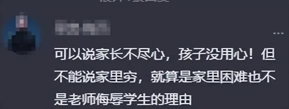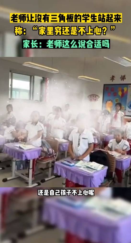 网传沈阳一小学学生未带三角板,被老师质问“是家里穷还是不上心”,学校回应:会去调查 9月18日,据大象直播间报道,网传辽宁沈阳一小学,因学生上课未带三角板,老师发视频到家长群称“是家里穷买不起还是不上心”,该言论引发争议。 视频显示,该老师让没有带三角板上课的学生站起来,并说道:“起立的孩子现在没有三角板,咱也不知道孩子是家里穷还是不上心。” 视频发布者称,是老师发在家长群的。有家长认为,老师说这样的话不合适。 对此,学校工作人员回应称:“这个事老师说的肯定是不对的,我们会调查这个事的。” 不少网友也表示,老师说话方式确实不恰当,“他没有,你让别的孩子借他用一下不好吗,干嘛说这些呢?” “可以说家长不尽心,孩子没用心!但不能说家里穷,就算是家里困难也不是老师侮辱学生的理由。” 【来源:九派新闻综合大象直播间、网友评论】 |