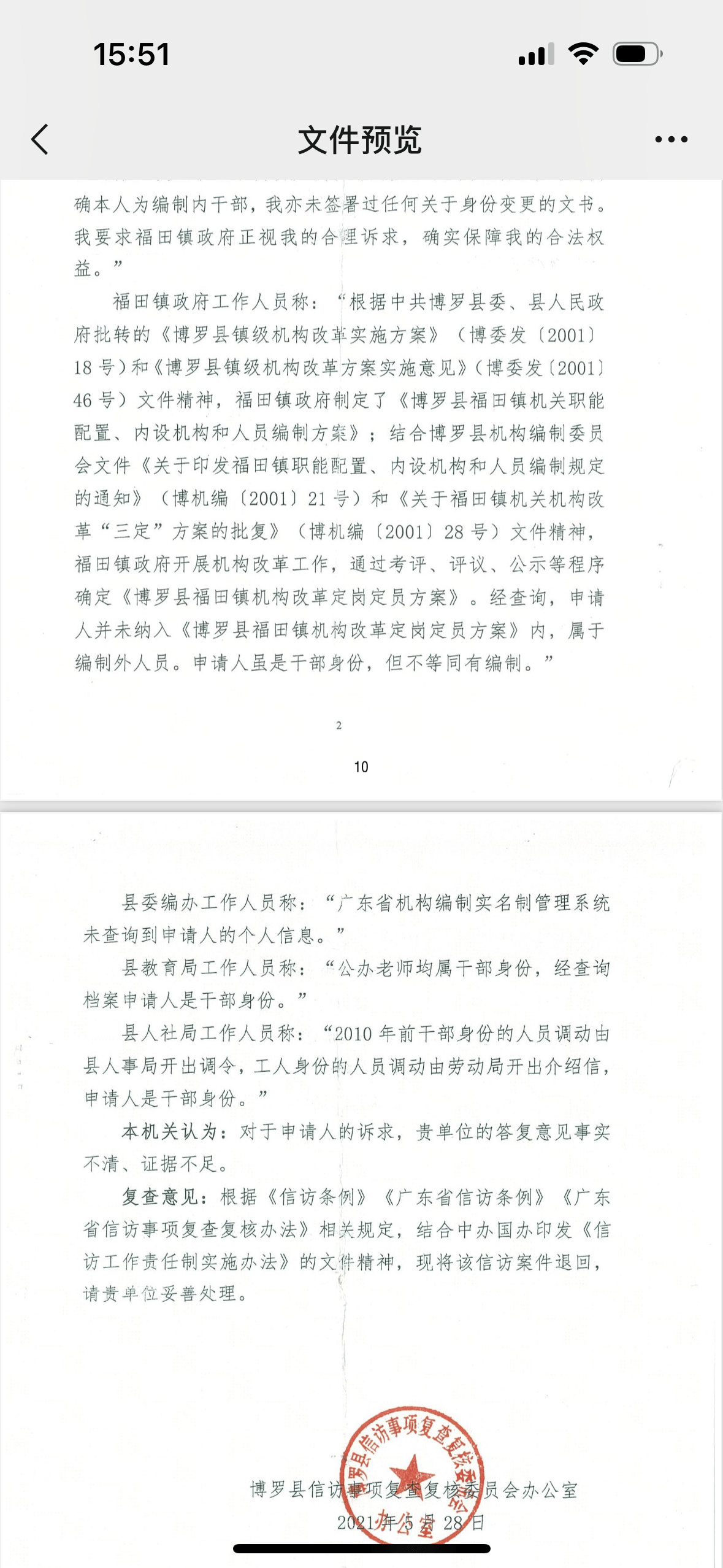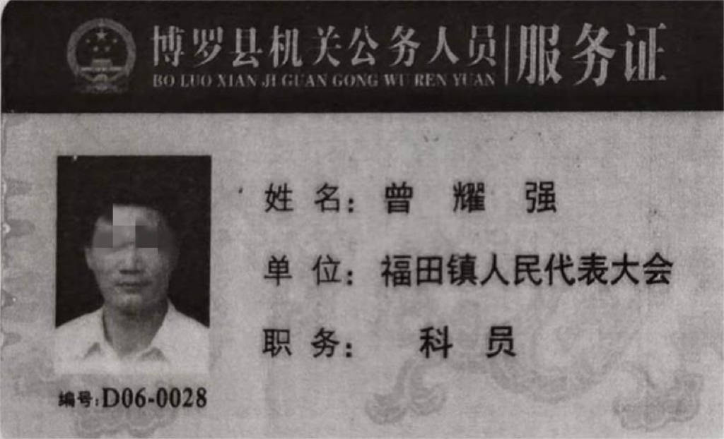 曾耀强的工作证件 本文图均为 受访者 供图 本是公办教师,后以“干部身份”调到镇政府工作近30年,办理退休手续时却被告知没有编制,属于“职工身份”……近三年,63岁的曾耀强都在为此事奔走。他称,在退休前,他一直以为自己是公务员。 曾耀强居住在广东惠州市博罗县,退休前在博罗县福田镇政府工作。惠州市人民政府作出的一份《行政复议决定书》显示,1991年,曾耀强从公办学校调动到福田镇政府工作,其个人档案有一份《广东省国家公务员过渡审批表》,填写时间为1998年5月,其中载明曾耀强身份为国家干部,过渡职位为福田镇农林水办公室办事员。该审批表经所在单位审查同意、主管部门研究同意后,由原博罗县人事局于1998年6月盖章同意过渡为国家公务员。此外,曾耀强的档案内有多份年度干部考核任免表,最新的考核任免表为2011年度。 针对曾耀强的疑问,福田镇政府曾多次答复,其给出的重要依据是,福田镇政府于2002年8月20日制发的《博罗县福田镇机构改革定岗定员方案》,其中记载全镇定岗定员编制数88名,并列明每个单位配备人员姓名及编制情况,里面没有曾耀强的名字。 2023年10月9日,博罗县福田镇工作人员回应澎湃新闻(www.thepaper.cn)称,“干部身份”不等于有编制,签署了《广东省国家公务员过渡审批表》并经过相关培训,也并不意味着有行政编制。而且曾耀强的名字不在上述方案中,属于非编制人员。 曾耀强的儿子曾先生向澎湃新闻表示,曾耀强曾是公办教师,是有事业编制的,调到镇政府工作近30年,原以为已经转为行政编制,但退休时却发现什么编制都没有了。假设曾耀强属于普通职工,这是要签订劳动合同的,但曾耀强从来没有签过劳动合同。 曾耀强曾参加广东省乡镇机关干部培训,且成绩合格。 由公办教师调动到镇政府工作近30年 1960年出生的曾耀强,于1976年参加工作。据曾耀强介绍,1978年以后,他在当地中小学任教,是民办教师,1985年7月由民办教师转为公办教师。1991年,他调动到福田镇政府工作。 曾耀强的儿子曾先生介绍说,进入福田镇政府工作后,曾耀强在福田镇政府担任过企业办公室副主任、经管站副站长等职务,退休前为福田镇政府人大办公室的一名办事员。2020年9月,曾耀强办理退休时被告知,因查询不到可证明其公务员的材料,不能认定其作为公务员退休,只可按普通企业职工办理退休。 在镇政府工作了近30年,曾耀强一直以为自己是公务员。而且,作为公务员退休,还是按企业职工退休,二者的退休待遇相差较大。曾耀强无法接受按企业职工退休的决定,曾多次跟福田镇政府沟通,并进行信访,要求恢复其公务员身份,以公务员身份退休。 “调动时县委组织部及县人事局均明确本人为编制内干部,我亦未签署过任何关于身份变更的文书。我要求福田镇政府正视我的合理诉求,切实保障我的合法权益。”曾耀强说。 澎湃新闻注意到,博罗县信访事项复查复核委员会办公室于2021年5月作出的《关于曾耀强申请信访复查处理的函》显示,针对曾耀强反映的问题,博罗县教育局工作人员称,办公教师均属于干部身份,经查询档案曾耀强是干部身份;博罗县人社局工作人员称,“2010年前干部身份的人员调动是由县人事局开出调令,工人身份的人员调动是由劳动局开出介绍信,申请人(指曾耀强)是干部身份”。 2023年2月,惠州市人民政府作出的一份《行政复议决定书》显示,1991年,曾耀强从公办学校调动到福田镇政府工作,其个人档案有一份《广东省国家公务员过渡审批表》,填写时间为1998年5月,其中载明曾耀强身份为国家干部,过渡职位为福田镇农林水办公室办事员,过渡考核为合格,岗位培训及过渡培训均为60分以上。该审批表经所在单位审查同意、主管部门研究同意后,由原博罗县人事局于1998年6月盖章同意过渡为国家公务员。此外,曾耀强的档案内有多份年度干部考核任免表,最新的考核任免表为2011年度。 福田镇政府曾答复称,曾耀强虽是干部身份,但不等同有编制。 镇政府:干部身份不等同有编制 2002年8月,福田镇政府制发的《博罗县福田镇机构改革定岗定员方案》,其中记载全镇定岗定员编制数88名,并列明每个单位配备人员姓名及编制情况,曾耀强的名字没有列在方案内。据上述《关于曾耀强申请信访复查处理的函》,博罗县委编办工作人员称,广东省机构编制实名制管理系统未查询到曾耀强的个人信息。 在一份信访答复中,福田镇政府回复称,经查询,曾耀强并未纳入《博罗县福田镇机构改革定岗定员方案》内,属于编制外人员。曾耀强“虽是干部身份,但不等同有编制”。在另一份信访答复中,福田镇政府称,根据《博罗县福田镇机构改革定岗定员方案》,曾耀强没有纳入定岗定员方案内,属于非编制人员,曾耀强本人也知道此事。后来,曾耀强也没有通过其他招录方式考录进体制内,因此在办理退休时仍属非编制人员,按政府规定享受非编制人员退休待遇。 针对此事,2023年10月9日,福田镇工作人员回应澎湃新闻称,“干部身份”不等同于有编制,签署了《广东省国家公务员过渡审批表》并经过相关培训,也并不意味着有行政编制。 曾耀强向澎湃新闻表示,在退休前,他并没有见过《博罗县福田镇机构改革定岗定员方案》,只是退休后才被告知有该方案。据其透露,2002年,福田镇相关负责人曾表示,在关于镇政府全体工作人员的测评会中,曾耀