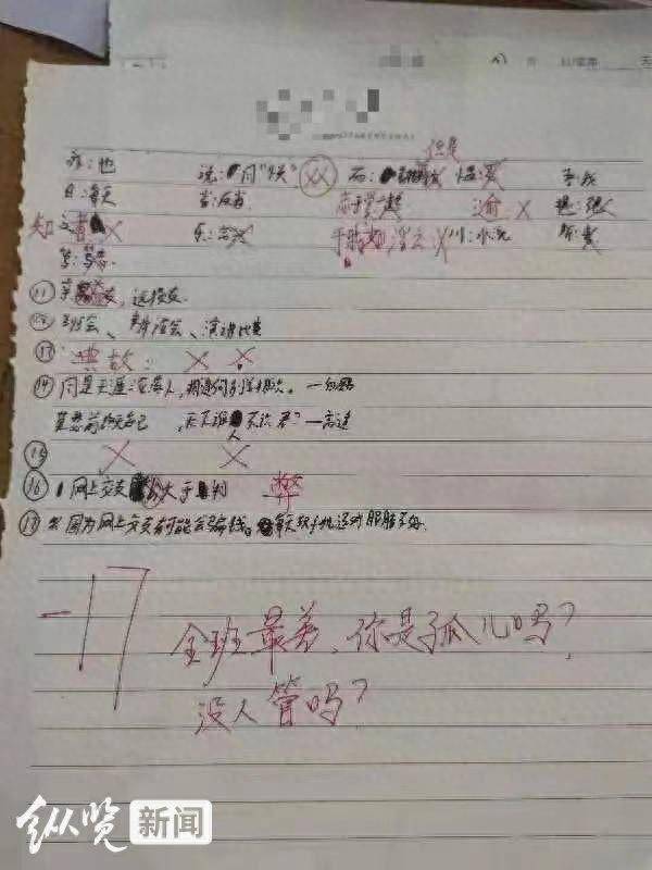 原标题:湖北一老师批改作业时写下评语“你是孤儿吗?”校方称将调查