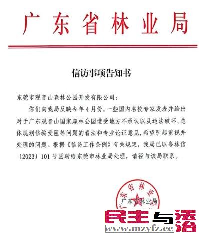黄淦波:东莞市林业局为何长期打压观音山国家森林公园 独立撰稿人 李海波 近几年来,观音山国家森林公园的各种话题热爆网络。目前更是全面开花,从红星新闻到上游新闻,从新华网到澎湃新闻,再到全国四亿听众的中央人民广播电台,又从电视到报刊杂志。作为关于民营企业营商环境的典型案例,10月28日,中央人民广播电台中国交通广播节目就观音山近期的相关热点问题进行了报道。而作为森林公园的主管部门的东莞市林业局更是被推到风口浪尖。先是被曝光面对森林被毁坏、非法占用不作为,继而是林业局对国家森林公园编修设置障碍,长期对观音山公园打击报复,再就是面对企业投诉一纸答复“已有处理”而阻断企业言路……究竟是什么原因导致如此令人匪夷所思?近日,观音山公园董事长黄淦波向撰稿人透露了众多内幕。 广东观音山国家森林公园位于东莞市樟木头镇境内,地处粤港澳大湾区的中心位置,在我国900多个国家森林公园当中,她是全国首家民营国家森林公园。观音山原为樟木头镇石新村开发缺钱搁浅,1999年经儒商黄淦波接手倾力打造。历经20多年发展,观音山从无名荒山发展到年游客超100万人次的世界知名宗教文化圣地,跻身国家AAAA级旅游景区,成为领跑中国生态文化旅游先行者。原国家林业局森林管理办公室曾发文称广东观音山国家森林公园开启了民营资本进入国家森林公园领域的先例,也成为我国森林公园投资体制改革中一个难得的样本,其创新经营模式为服务城市生态环境高质量发展体现了民企担当。 ![]() 秀美观音山 对观音山国家森林公园,东莞市林业局干了哪些事? 一是对毁林案件视而不见,不予查处。观音山国家森林公园拥有宝贵的森林资源,大部分都是生态林,是绝对禁止破坏的。而观音山成名后就有不少人看上了这块宝地。甚至有香港人在里面修建豪华别墅,也有人在里面修建豪华坟墓...... ![]() 香港人余兴在观音山森林公园内核心区的2栋违建别墅“名门” 占地和建筑面积均达约3千平方米 ![]() 香港居民潘宝燕及其四个子女在观音山公园内核心区修建的占地和建筑面积均约3千平方豪华别墅“颐雅山房” ![]() 观音山国家森林公园内的豪华坟墓 截至2022年底,陆续有不法分子私建大小坟墓20多座,多数占地面积为50平方米至100平方米,其中有两座坟墓占地面积超过300平方米。 十多年来几十家媒体不断到观音山调查采访并曝光,每次几百平方几千平方的毁林现象,触目惊心!但东莞市林业局长期都坚决否认观音山有毁林现象。在今年公园就委托专业律师去举报。举报后,多家媒体又对此进行报道,引发了社会各界的高度关注。 ![]() 2012年中央电视台以《国家4A级森林公园竟藏22栋私人别墅》为题报道 ![]() 2012年7月18日《新快报》以《东莞一森林公园现22栋私人别墅 负责人称管不了》为题报道的违法别墅群图片 ![]() 2017年,《民主与法制时报》报道了《广东观音山国家森林公园违建何时能拆除》 遗憾的是,对于中央及地方媒体长期的舆论监督,东莞市林业局就是不予理睬,也一直不予查处,放任违建在森林公园大煞风景!他们仅对香港居民余兴的两幢别墅的大门旁边进行简单的拆除,反而帮助余兴在别墅前、后又侵占的1500多㎡公园的林地公费种植树木,以掩盖其侵占国家森林公园林地建别墅的违法行为。 更令人匪夷所思的是,今年4月12日下午,东莞市林业局局长安连天率队赴观音山调研时的反应令人费解。看着一片片触目惊心、森林资源被严重毁坏的景象,林业专业毕业的安连天竟如此回应:村民种植荔枝林要看是在观音山承包之前还是之后,有可能是一些剪枝嫁接,不一定存在毁林行为。而到了违建别墅现场,安连天指出要看对方有没有土地证和建设施工相关证件,别墅是在观音山承包前就已存在还是后续才建设?观音山公园管委会主任陈景玉强调,两处豪华违建别墅都是香港籍人士私自违法买卖宅基地,并在观音山承包以后的2009年进行修建或扩建,已明显违反《中华人民共和国土地管理法》;政府相关职能部门的行政许可批复是否存在问题?对此,安连天装着没听见,没有回应。 ![]() ![]() 这是2010年樟木头镇政府属下机构在石新村起诉公园要求中止承包协议时提供给东莞市法院的证明材料,白纸黑字承认了有660亩森林被毁。 2014年,观音山曾委托沧州科技事务司法鉴定中心对公园内的荔枝树面积进行鉴定,确定观音山公园范围内至少存在13块荔枝林,被毁林地多达1085.91亩。 ![]() 2014年观音山公园委托沧州科技事务司法鉴定中心出具的鉴定书。 ![]() 2023年观音山公园委托大连鸿泰海洋资源资产价格评估有限公司出具的评估报告书。 报告显示:公园部分森林被毁面积为1122.7亩,尚未包括 “三项工程”和坟地、豪华别墅等等的毁林面积。 看到以上的三件证明文件,让人对东莞市林业局的涉嫌渎职的行为无法释怀。 二是联合东莞市市各相关局对公园进行围剿。在刘志庚收购公园未果后,工商局过来查执照,税务局过来查账,城管局、宗教局、环保局、交通局、国土局也争先恐后的过来,只要和公园沾的部门都“关怀”观音山。东莞市林业局也来调查观音山的手续问题,后来省林业局也派人调查,这一调查把省林业局的人愣住了:东莞作为改革开放的前沿阵地,居然还做出政府强行收购民营企业这样的事情,实在是不可思议啊。于是就