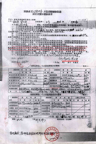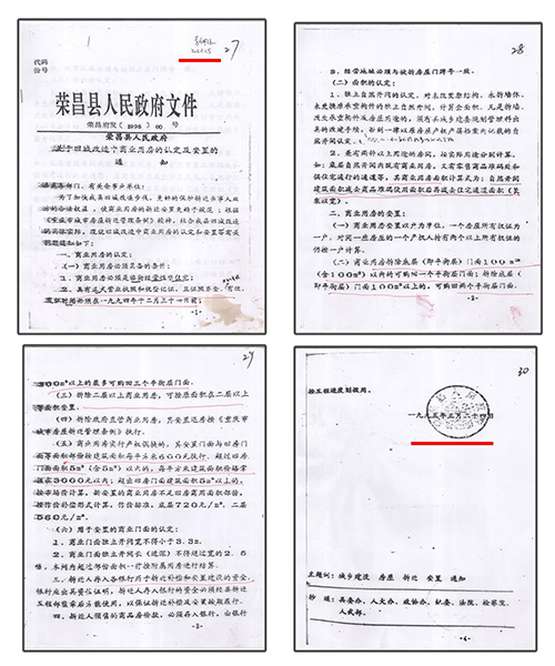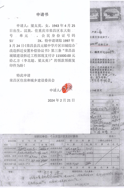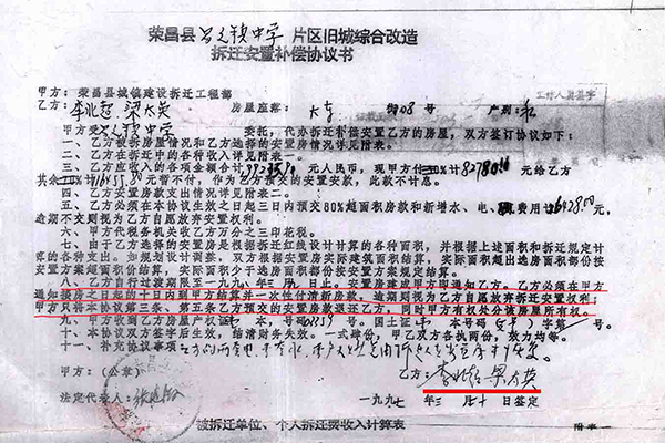| 重庆荣昌区原房管局:06年多收被安置户房款7.8万牵出“案中案” 独立撰稿人/邓爱华 1997年旧城改造,房管局长隐瞒政策,安置面积缩水,门面充住房安置,领款凭证变成交款收据,2006年多收被安置户房款7.8万元。 被安置户通过信息公开,及在房管局内部人员帮助下,调取到当年拆迁安置补偿情况和政策文件。住建委要求被拆迁户走司法途径,一审二审再审建委却以“超过起诉期限、补偿安置方案已履行”为由不到庭,法院不开庭,以书面形式审理后驳回诉求,检察院也不支持监督申请。拆迁科长一句话,去中天公司查领款凭证,却牵出另一个案子。拆迁工程部变成中天公司,由房管局办公室主任1999年注册,正副局长、会计(职工家属)参与,40个股东(5人每人出资2.2万元,35人每人出资2万元),负责代办房屋拆迁、安置,房地产信息咨询、交易代理,丈量面积,代办房地产报批,房屋招租。 40个股东拥有50个门面,坐分租金,后因政策变动对门面进行分批处置。 2021年2月份卖了6个。3月份公开竞卖21个,底价高达2159万元,其818.59㎡面积哪来的?目前,50个门面全部卖完。 01 房管局副局长说,今年的拆迁政策是,各了各的算,口头传达的,没有拆迁文件? 1997年,荣昌县昌元初级中学扩建校园,需拆迁昌元镇大东街106-128号、132号-140号、144号(双号)及附号、祥和路18至32号(双号)及附号等约六千平方米建(构)筑物。 3月8日,在县老干局会议室召开拆迁安置动员大会,房管局副局长张远淑(下称张局长)主持会议,说今年的拆迁政策是,各了个各的算。房管局按评估价把你的房子买过来,修好后你又按评估价买回去。 梁太英说:“我和我老公多次要求看拆迁文件,张局长说是口头传达的,没有拆迁文件。” “我是在2020年5月12日通过政府信息公开方式,才获取由重庆市住房和城乡建设委员会提供的1997年重庆市城市房屋拆迁适用的是《重庆市城市房屋拆迁管理条例》(重人发〔1992〕19号),又在2022年1月5日获取由重庆市荣昌区房屋征地拆迁中心(下称征地拆迁中心)获取的《荣昌府发〔1995〕60号关于旧城改造中商业用房的认定及安置的通知》早在1995年3月24日出台。” ![]() (重人发〔1992〕19号)。梁太英 供图 ![]() 荣昌府发〔1995〕60号。梁太英 供图 “虽然在2022年调取的房屋拆迁公告显示有拆迁条例,其真实性存在问题。日期也是‘197年’3月7日,为三国时期。” ![]() 2022年调取的房屋拆迁公告。梁太英 供图 “在2007年调取的《拆迁安置补偿协议书》里,仍然没有公开当年拆迁安置补偿政策文件依据。” 02 住宅面积109.51㎡改为259.83㎡,非住宅由397.67㎡改为248㎡(商业用房223.52㎡、其它7.34㎡、营业用房只有16.23㎡) 房管局下属部门荣昌县城镇建设拆迁工程部(下称拆迁工程部)在拆迁动员大会之前的1996年4月18日已对昌元镇大东街108号李北超、梁太英私有财产进行了现场登记查勘(下称现场查勘表)。 ![]() 现场登记查勘表。梁太英 供图 梁太英说:“房屋一共三层,从2021年12月14日调取的《现场查勘表》数据计算,第一层201.685㎡,第二层195.85㎡,第三层109.51㎡,合计507.18㎡。查勘表注明,第一层、第二层为营业用房,共397.67㎡,第三层为住宅只有109.51㎡。” 查勘人黄天艳、王秀荣计算,三层合计才498.24㎡,比梁太英计算的507.18㎡少8.94㎡。最终认定有效面积为507.83㎡。 从2021年3月10日调取的1996年3月20日《旧城改造拆迁安置情况统计表》(下称拆迁安置统计表)来看,住宅面积由《现场查勘表》109.51㎡改为259.83㎡,非住宅面积由397.67㎡改为248㎡(商用房223.52㎡、其它7.34㎡、营业用房只有16.23㎡)。 ![]() 旧城改造拆迁安置情况统计表。梁太英 供图 梁太英说:“一楼进门门面是摄影器材→歌舞厅→包间→舞厅厨房,53.27㎡住宅面积从何而来?二楼前面是休息室→摄影场→餐厅→天井→餐厅备料间→餐厅厨房,哪来的259.83㎡住宅面积?三楼才是住宅,四个寝室,一共只有109.51㎡。” 03 第一份协议消失,第二份协议显示被安置户“签名”却申明作废,第三份协议有效又没有被安置户签名? 梁太英说,她家拆迁面积最多,安置面积最少,1997年拆迁,1998年搬进安置房后,因安置补偿不合理,一直没有去办理房屋产权证。是2006年3月房管局的人说,‘再不去交安置房款和办理房产证,就视为自愿放弃拆迁安置权利’。这一条款也写入了《拆迁安置补偿协议书》。 “3月14日,我才到房管局把《拆迁安置情况统计表》、《拆迁安置补偿协议书》(没有签名)拿回来,第二天才到大厅产权证登记窗口交钱,交钱后工作人员将统计表和协议收回,一个星期后,带上交款收据去领取产权证的。” 梁太英说:“交钱时那份协议,是第一份协议,下方注明有补门面款38000元、住房款50928.86元,这份协议之后消失了,只有一份收据,总金额为88928.86元,” ![]() 门面、住房交款收据。梁太英 供图 “那份协议,我也看见,补门面款38000块钱,住房补多少钱记不起了。”梁太英的女儿说。 “2007年,我到拆迁中心把《拆迁安置补偿协议书》调出来看,不是第一份办产权证那份协议,下面没有注明门面、住房补多少钱了,也没有显示我和我老公(已故)‘签名’。该协议为第二份,显示日期1997年3月24日。” ![]() 第二份协议,没有被安置户签字、盖印。梁太英 供图 之后,每次调出来的都是1997年3月24日那份协议。 梁太英说:“2021年3月10日,拆迁中心田静科长说找到我们当年签名的安置补偿协议了,