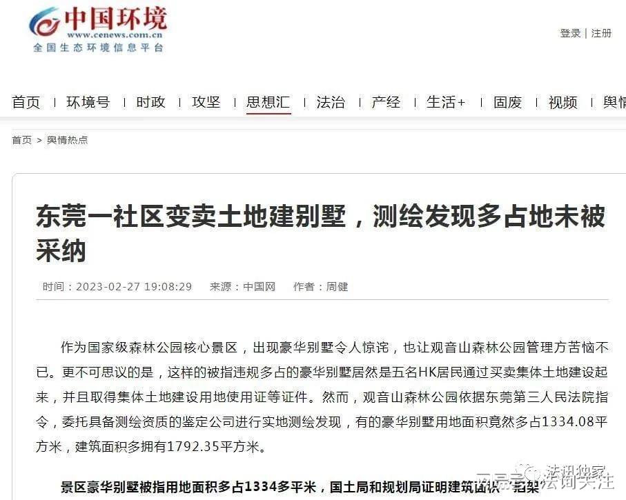 东莞构建全方位控违治违体系 观音山大量违建无人理 特约记者 郑义 南方日报于3月29日以《从地面到空中,东莞这样构建全方位控违治违体系》为题进行报道:3月27日,东莞各镇街(园区)同步举行违建治理联合执法拆除现场会。近年来,东莞城管狠抓农房违建,严控快处小区类、产业类、公共配套类等各类违建,基本实现新增违建“零增长”、历史违建“减存量”。 最新数据显示,2023年至今,东莞全市累计治理违法建设面积3690.42万平方米,助力东莞拓空间和城市品质提升。 打造从地面到空中的立体防控体系 东莞通过高频网格巡查、航拍比对、无人机巡查、明察暗访等多种举措,打造从地面到空中的立体防控体系。东莞城管实行“全天候、全方位、无缝隙”网格化巡查,每周市、镇、村三级定人定岗定责巡查(督导),同时配合无人机抽查。全市组建93组无人机编队,34个镇街(园区)分局均有航拍设备。 构建高效快速的新增违建闭环处置流程 新增违建侵占城市发展空间。在实践中,东莞探索形成快速拆除、片长包干、监督问责、宣传普法四项机制,构建高效快速的新增违建闭环处置流程。 在存量违建方面,东莞按照“拆除一批、没收一批、整改一批”的思路,通过“三旧”改造、房屋征收、依法拆除、城市更新、打造特色精品示范村和特色连片示范区等方式,推动存量违建治理。 观音山内别墅、豪华坟墓、工厂会所等违建70余幢没人管 看到东莞市大动作地举行违建治理联合执法拆除,深为该市的控违决心而鼓舞。但仔细看看,东莞市基本实现新增违建“零增长”、历史违建“减存量”。但上至中央媒体下至地方媒体报道的东莞市观音山森林公园的诸多违建却没见“减存”,一处违建都没有减少,不见拆除。这是为何? 2019年公园以书面形式向该局反映自2004年至2020 年之间,石新社区书记蔡树生等人在明知观音山已成为国家森林公园的情况下,非法霸占、转包公园土地,砍伐森林,公然违建别墅。在利益的驱使下,蔡树生等人还支持多名港籍人士、商户、村民,在观音山公园内毁林兴建别墅、工厂、会所、商铺、农庄等违法建筑物超70余幢(间别墅、厂房、会所、商铺)等,这些建筑要么根本没办理任何手续,要么实际建筑面积远远超过土地使用权证所标明的用地面积等等。 央视2频道调查报道:4A级观音山国家森林公园竟藏22栋私人违建别墅(视频截图) 新快报报道的《东莞观音山森林公园现22栋私人别墅》:部分别墅门前泥土已流失 新快报报道的《东莞观音山森林公园现22栋私人别墅》:俯瞰观音山景区,一栋栋私人别墅格外显眼。 香港居民余兴在观音山国家森林公园内的违建别墅“名门”不同角度的照片 香港居民潘宝燕及其子女在观音山国家森林公园内的违建别墅“颐雅山房”不同角度的照片 坐落在森林公园内的违规违法别墅有22栋,规模最大的是位于公园主干道吉祥路两旁的香港籍人士余兴的“名门一号”两栋和香港籍人士潘宝燕的“颐雅山房”一栋。港籍人士能够“成功落地”观音山,缘于东莞市政府违规发放土地使用证,这也是造成园区内违法建设项目屡禁不止的主要原因。 据悉,“名门一号”两栋连体别墅,系2009年香港籍人士余兴,砍伐1000多平方米森林,超占林地面积1500平方米,建起的占用林地面积1700平方米的大别墅,同时又对购买罗美兰的房屋进行改建扩建而成。 大煞风景的广东观音山国家森林公园景区内"豪华公墓"(来源于环球网) 观音山公园内坟墓群 法治日报社《法治周末》报道的《国家森林公园的高压电网群》 生机盎然的观音山国家森林公园内,有着密集的高压线。这些建设合法吗? “观音山大规模毁林事件”之一: 《民主与法制时报》报道的《广东观音山国家森林公园违法建筑何时能拆除》 2023年2月27日中国环境网的报道《东莞一社区变卖土地建别墅,测绘发现多占地未被采纳》 观音山国家森林公园内的大量住宅设施和各类工厂 沧州科技事务司法鉴定中心勘查观音山国家森林公园内违法毁林私建别墅、工厂、商店等建筑物。 资料来源:广东观音山国家森林公园 公园为游客服务的候车棚一处0.08平方米的候车棚违建都被东莞市自然资源局认真查处没收,为何观音山众多别墅、豪华坟墓不见拆违?如此,难怪有人认为东莞市的拆违存在利益执法! 看看:此为公园门楼至仙泉水库之间的全景图,图中违建均有编号,如与 2003年的卫星图相比较则可分辨出违建的位置和数量,该区域违建多达近七十幢。 观音山公园曾在投诉信里反映东莞市对公园内从门楼一直到仙泉水库及吉祥路沿途,有严重的违法违建的别墅、工厂、会所、商铺、农家乐等超70 处不予以认真的拆除(据目测只拆除不到6处)。 在网文《打虎拍蝇 还要揪出林业“蛀虫》里有如此表述:“秦岭那么多别墅,都拆除了,为什么观音山的拆不了?表面上是违建问题,实际上是腐败问题。”陈老师说,我们公园在2019年起诉了“名门”别墅主人余兴和2020年观音山起诉“颐雅山房”别墅主人潘宝燕毁林违建别墅。可惜两次起诉,都以公园败诉结束。” 据报道:2015年前后,公园曾遭不法分子毁林开荒种植蔬菜、果树13块,违法建豪华别墅、豪华墓穴、饭庄、工厂、会所、多家临时商铺等90余处,累计破坏林地达2000亩。目前,建在观音山国家森林公园里的豪华坟墓20余处,多数占地面积为50平方米