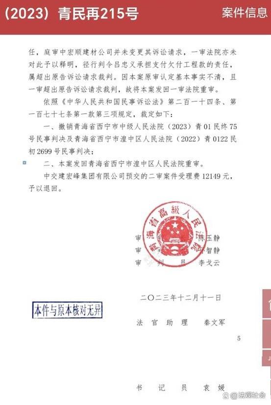 西宁中院出奇葩判决结果来了:改判宏峰公司不承担责任 独立撰稿人 李海波 近日宏峰公司收到了青海省西宁市湟中区人民法院(2023)青0122民初4925号民事判决书:改判宏峰公司不承担责任。这给法讯网2023年5月3日发布的《西宁中院出奇葩判决:支持上诉人请求,反而判决上诉人承担责任》画上了句号。 文章显示:2016年3月,宏峰公司中标案涉项目。合同签订后,宏峰公司将该工程转包给实际施工人吕忠义。由其自行组建了项目部并自行聘请了人员、材料、设备等进行了施工,项目竣工验收审定金额为114758171.41元。 2019年5月31日,宏峰公司与实际施工人吕忠义结算完毕,将全部工程尾款支付给了实际施工人。实际施工人出具《承诺书》、《确认书》、《收条》,确认收到宏峰公司114758171.41元。 实际施工人吕忠义承诺该项目所有款项已与宏峰公司全部结清,如该项目今后产生的一切法律责任与经济责任以及维修保养责任等均由本人承担,与宏峰公司无关。 2022年6月,宏顺公司以与宏峰公司存在合同关系为由向西宁市湟中区人民法院提起了诉讼,宏峰公司申请追加实际施工人吕忠义为被告。湟中区人民法院作出一审判决,判决实际施工人吕忠义对原告承担支付责任,宏峰公司承担连带支付责任。 宏峰公司不服西宁市湟中区人民法院作出的一审判决,向西宁市中级人民法院提起上诉,西宁市中院于2023年3月22日组织开庭询问,27日即作出(2023)青01民终75号民事判决书,支持了上诉人宏峰公司的上诉请求,撤销了一审法院对宏峰公司承担连带责任的判项,但却在实际施工人吕忠义没上诉的情况下改判吕忠义不承担责任,由上诉人宏峰公司对被上诉人宏顺公司承担全部支付责任。 百度该文章网页很多 文章发表后引起了社会强烈反响,多家网站转发。法询关注快手号播放量更是高达17万多人次。 之后青海省高级人民法院2023年12月11日下达了(2023)青民再215号民事裁定书:再审申请人宏峰公司因与被申请人西宁宏顺装饰建材有限公司(以下简称宏顺建材公司),一审被告青海益禾农商投资发展有限公司(以下简称益禾公司)、吕忠义建设工程施工合同纠纷一案,不服青海省西宁市中级人民法院(2023)青01民终75号民事判决,向本院申请再审。本院于2023年7月5日作出(2023)青民申368号民事裁定,提审本案。本院依法组成合议庭,于2023年11月13日公开开庭审理了本案。再审申请人宏峰公司的委托诉讼代理人范丽蓉,被申请人宏顺建材公司的委托诉讼代理人杨晖,一审被告益禾公司的委托诉讼代理人李晨阳,一审被告吕忠义的委托诉讼代理人张世宏、武亚楠到庭参加诉讼。本案现已审理终结。 本院再审认为,本案中,益禾公司系通过招投标程序确定案涉工程的承包单位为宏峰公司,结合宏峰公司一审陈述及再审中证人于鸿雁的证言,本案吕忠义系以宏峰公司的名义参与案涉工程投标。宏峰公司中标后,以内部承包方式与吕忠义签订了《内部责任承包合同》。据此,本案应结合案涉《内部责任承包合同》的约定和实际履行情况以及工程款的拨付过程等事实,查明吕忠义与宏峰公司之间的法律关系。在此基础上,进一步认定宏顺建材公司是否有权要求宏峰公司承担支付工程款的责任。一审法院以宏峰公司与吕忠义之间系挂靠关系为由,认定宏峰公司对宏顺建材公司的工程款承担连带支付责任,二审法院认为一审此节认定错误,但又在未查明实际施工人与被挂靠单位是否存在合同关系的情况下,判令宏峰公司承担支付工程款的责任,属事实认定不清。此外,本案宏顺建材公司的一审诉讼请求为判令宏峰公司向宏顺建材公司支付欠付工程款及利息,益禾公司承担连带还款责任。审理过程中,宏顺建材公司虽申请追加吕忠义为被告,但并未主张吕忠义承担支付责任,庭审中宏顺建材公司并未变更其诉讼请求,一审法院亦未对此予以释明,径行判令吕忠义承担支付欠付工程款的责任,属超出原告诉讼请求裁判。因本案原审认定基本事实不清,且一审超出原告诉讼请求裁判,故将本案发回一审法院重审。 依照《中华人民共和国民事诉讼法》第二百一十四条、第一百七十七条第一款第三项规定,裁定如下:一、撤销青海省西宁市中级人民法院(2023)青01民终75号民事判决及青海省西宁市湟中区人民法院(2022)青0122民初2699号民事判决;二、本案发回青海省西宁市湟中区人民法院重审。宏峰公司预交的二审案件受理费12149元,予以退回。 |