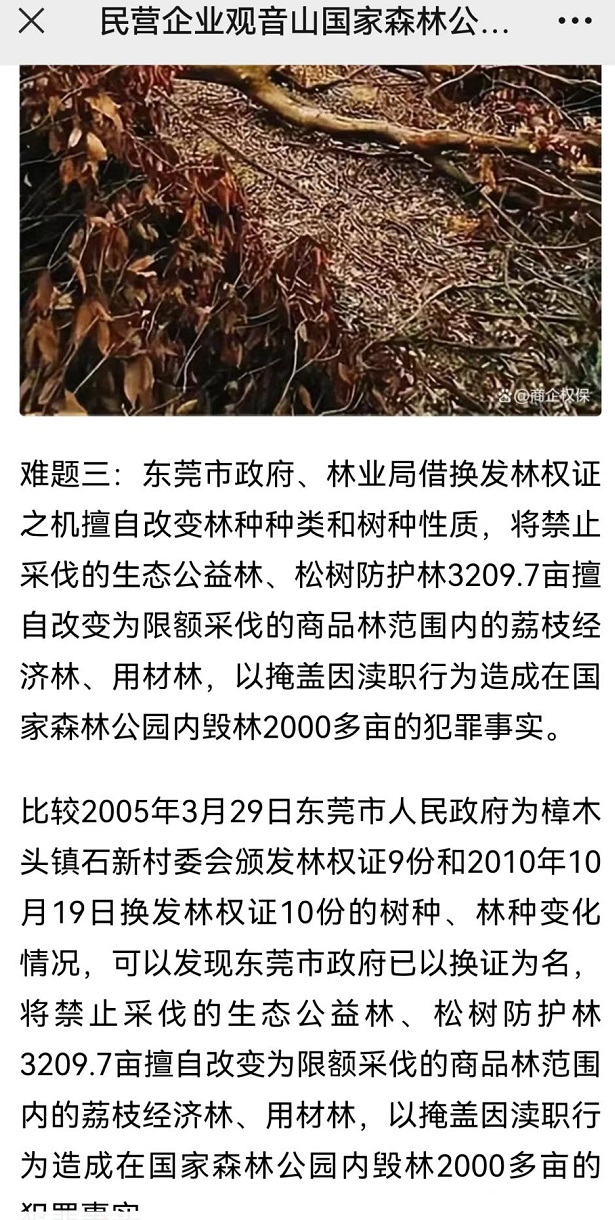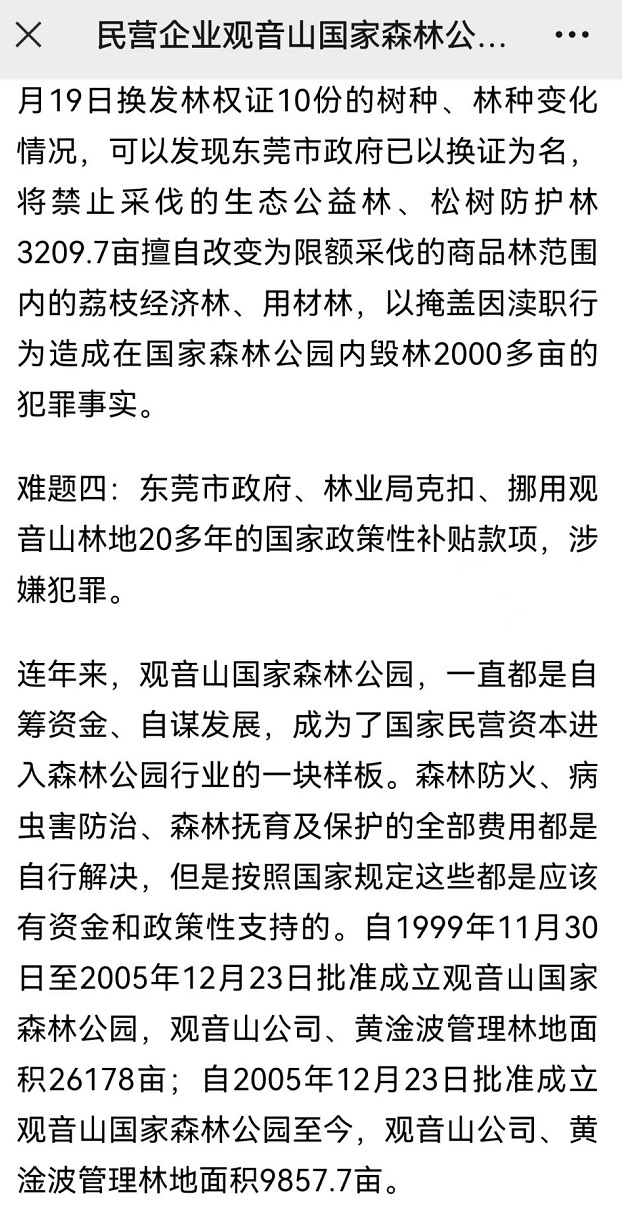 而观音山公园大量的森林被毁,长期被电老虎压制而80%服务区域没有市政供电,公园内大量的违法别墅和豪华山坟屹立不倒,观音山公园《总规》修编从2018年起至今没有解决等等,均是发生在肖市长、肖书记在东莞主持工作期间,期间数百家媒体的连番报道,居然至今无动于衷,这种不作为、乱作为的表率作用,可以很好的对应了东莞长期被人们诟病的“东莞门”及“观音山事件”。 凤凰网等主流媒体近日刊发了一则报道,单个媒体阅读量突破300万人次。