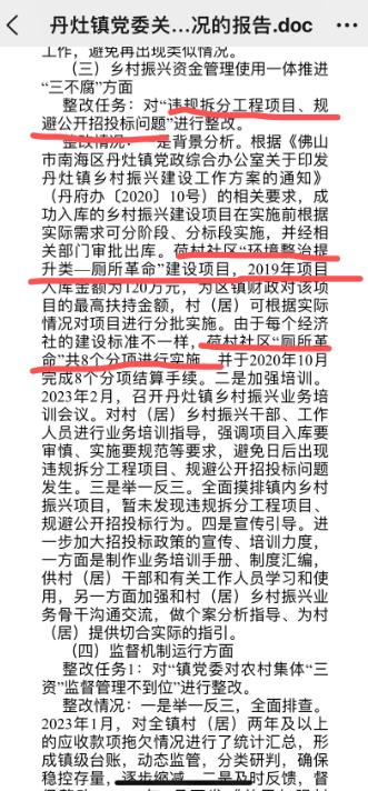| 广东佛山丹灶镇农民呼声之四:荷村书记被上级巡察出多项违法问题 徐铨昌有待处分 6月21日,佛山市南海区政府网站,发布了丹灶镇落实区委第二巡察组集中整改进展报告。丹灶镇管辖几十个社区,上百个经济社。惟独普通的荷村社区和村书记,被巡察出了诸多问题。 第一条,南海区委第二巡察组查出的荷村2个乡村振兴项目,招投标材料不全,“已补充潜在竞标人的相关资料”。 这根本不是简单的资料不全,而是排除了其他竞标人的违法操作。为啥排除其他竞标人?这是猫和老鼠合谋,居然敢写进给区委政府的整改报告里当成绩。工程都做完两年了,再补充潜在的竞标人材料,这是包庇代替违法追责,指定施工方意味着什么,不就是贪腐吃回扣吗? ![]() 在乡村振兴项目中,清楚表明荷村书记徐铨昌胆大妄为,公然逃避公开招投标,“指定专人做工程,两年后补竞标手续作假应对上级巡察。” 第二条,荷村书记徐铨昌“违规拆分工程项目、规避公开招投标问题”。还是熟悉的招投标,这次是套用财政资金120万,体制内的人都知道,仅这一条徐书记政治上就死翘翘了。有哪份文件会允许违规拆分工程项目、规避公开招投标?即使拆分项目,也绝不允许不公开招投标。不公开招投标,就是明目张胆腐败,任何辩解都是胡扯。 如果招投标,众目睽睽之下不好操作。果然,再次以“情况特殊”分拆成8个项目,顺利套现了财政资金。让人很奇怪,只要是工程项目,徐铨昌总能其他社区不一样,搞成“情况特殊”? 这个“环境整治提升类—厕所”建设项目,是南海区的乡村振兴项目。丹灶镇报告整改第三条写着:全镇乡村振兴项目,也包括建厕所,未发现违规拆分工程项目,规避招投标行为。全镇几十个经济社,都实行招投标,唯独到了荷村徐书记这里,跟钱沾边地球人都知道的招投标猫腻,变成了合规,而且是工程完工一年后,再补的“手续”。这个回复,直接打脸上级党委,这不是整改,这是对贪腐人员的表扬和自我表扬! ![]() 南海区委巡察组明确点出,荷村书记徐铨昌胆大妄为,对120万财政拨款项目分拆不招标,涉嫌明确违法。 第三条,群众最关注的这条。“农村集体资产合同监督管理不到位问题”。丹灶镇报告整改情况:荷村为收回原承租方拖欠的租金,解决历史合同纠纷,化解合同双方矛盾,最大限度维护集体利益,实施延长合同年限。 荷村徐铨昌书记被南海区委第二巡察组,直接点名了6次,是非常罕见的,在区县委巡察反馈中,可以说创了记录。何家合同租地一事,百分之70的村民坚决反对,认为是暗箱操作和合谋串通的结果,操作痕迹明显,彻底查清并不难。村民多次信访、签名请愿、甚至拉横幅阻挠承租方,村代表们请人帮助维权等,舆情汹涌。 何家村165人,老人34人,被现任荷村书记徐铨昌等“村霸”打压,把利益暗中输送社会老板,群众生活非常艰苦,紧急向上级领导和媒体求救,救救村民们吧。何家经济社近十年以来,收入比临村少百分之50以上,徐铨昌当村书记10年,未见给村民做过半件公心事,反而对何家村民忍瞒事实,滥用职权,打压老人,镇压村民,养狗咬家人。你和原社长何津祥,不担心党纪国法的清算吗? ![]() 何家村民百分之70以上的签名,要求追查荷村书记徐铨昌和何津祥,篡改村民表决,暗箱输送社会老板千万租金,请求佛山纪委监委查处。 第四条,被上级巡察组点名的,又是熟悉的土地出租合同,又是“熟悉”的荷村。丹灶镇报告中说,2023年2月,农业办针对“荷村经济社在合同未到期先行签订续租协议”约谈荷村徐铨昌。合同未到期,几个人暗箱操作先行签订续租协议,实际已经签署生效了,这里面要是没事,可能吗?如果不是南海区委巡察,群众不可能知情,这和我们何家村一样,同样是利益输送,个人拿好处。 ![]() 佛山有熟悉内情的网友评论,“此人坊间人称‘鬼铨’,他擅于立亲信,除异己,毫无底线。”如荷村镇南经济社、荷村陈家等。还有评论,“做人不惹事,遇事不怕事。越软的柿子越捏得狠,让他们捏一次榴莲就长记性了!” 其他还有,农村集体资产“应上未上”平台交易监管不到位问题。报告中称:镇纪检多次约谈荷村书记徐铨昌,要求整理好跃龙经济社集体资产未经平台交易的合同,补录到资产交易平台。 同招投标一样,集体资产“应上未上”平台交易,本质是脱离监管,只有暗箱操作才有贪腐机会。综观南海区委巡察组的点名,直指要害,村书记徐铨昌众多违法问题浮出水面。 巡视和巡察制度,是党中央、习主席亲自部署的政治体检,是严肃的政治任务,绝不允许搞变通,对党不忠诚不老实。 代表南海区委的巡察组,明确调查的村书记违法问题,是相当有说服力的,也是上级对徐铨昌的严重不称职结论。丹灶镇没有处分,反而利用职权让徐铨昌进一步当上了区人大代表,一名涉嫌贪腐随时可能被纪律审查的村书记,向区县纪委书记面对面“提人民建议”。真是莫大的讽刺!这是党员纪律处分条例明确禁止的,个别人利令智昏,被暂时的权力迷失了双眼。这笔账迟早会被群众清算! 近期网上火爆的清华大学毕业生马翔宇举报苏州祝欢局长围标中标、利益输送,快速地被纪委立案调查。而徐铨昌被网络曝光存在多项违法问题。上,被巡察出多项违法问题;下,被村民联名投诉举报的丹灶镇荷村书记徐铨昌,为何还稳坐村书记位置?是荷村没人了,还是他头上的遮阳大伞无人敢动?!谁能让徐铨昌久坐