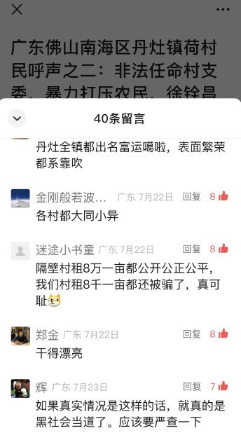 | 丹灶镇荷村村民呼声之六:佛山村民向广东省委常委、纪委书记宋福龙同志公开求救信 我们是佛山南海区丹灶镇荷村何家经济社,全村165人,老人34人,荷村书记徐铨昌、原社长何津祥等,2013年将何家村珍贵的集体建设用地,以农用地价格低价出租给个人,严重侵犯群众利益,何家村每年损失400万租金收入,土地变性以来损失4000万以上,仅佛山市南海区就有591份合同整改,挽回租金5亿元,这只是区县自查自纠冰山一角(附、佛山市纪委监委公众号截图)。 ![]() 图为:中国共产党纪律处分条例,对干扰农村选举等严重违纪的,应给予第三种监督形态执纪处分。 南海区纪委没有查证的举报事实还有:1、区委巡察组查实的徐铨昌拆分财政资金120万,不公开招投标,在乡村振兴公共厕所建设指定承包商,严重违法(没有涉嫌之说)。2、何家土地合同第4页补充栏目,少数人非法处分集体财产,篡改集体表决内容,徐铨昌保管公章,和何津祥暗箱操作,涉及千万财产损失。3、20多亩农田被何津祥以“填耕土”名义,实际填埋垃圾淤泥,耕土层被毁坏5米深,生态执法人员4月份挖掘确认,至今丢荒3年以上。在农村填埋垃圾用田,公开行情起步是1万元每亩,这不是秘密,邻近的东升社区同样的填埋情况,集体收入20多万。所以,这笔收入是被村干部拿走了。4、向社会老板多出让4.36亩土地,10余年不收租金,损失200万元以上。5、合伙隐瞒留用田指标被批下来的重大事项,隐瞒合同内容,长达7年多,向社会老板输送巨大利益,南海区纪委以合同不公开给予何津祥警告,却不调查涉嫌腐败原因。 2023年6月,南海区纪委办案人员,对多位村民“提示性讯问,选择性笔录,惩罚式问话”,令人震惊不已。仅举一例:谈话前,纪委人员问村民“你是不是和被反映人徐铨昌、何津祥等有仇(矛盾)?”村民说没有。纪委人员说“既然没仇,何必举报人家呢!”村民说是为村里维权。纪委人员说“村里的事自己解决得了,何必举报呢!”纪委人员在问话开始前,给被反映人开脱的意思,太直白了!纪委办案不是很严谨吗?这样的话都不是“暗示”,近乎粗鲁直白告知村民,我们就是来做个样子的。果然,村民发现,重点反映农田被填埋垃圾、农业合同低价租建设用地千万输送等,要么含糊其词,要么不记录。有位村民当场提出意见不签字,纪委人员指着笔录中含糊的三两句话,说“都给你记上了。”再三催村民签字,无奈也签了。甚至从下午14点半,连续到夜里21点多,对村民“惩罚式笔录”,晚饭给了盒饭,村民不合胃口没吃,也不予理睬,晚上继续熬。对这些违反审查纪律明显偏袒的做法,区纪委没有解决。 尊敬的宋福龙书记!您提出的高度重视群众反复举报内容,必要时上级纪委书记带队,破除熟人社区的弊端!我们发自肺腑的说,太正确了!村民们反映50多次仍然拖延,已经官官相护,毫不避讳,越是群众反对,越是基层英雄。以被反映人村官徐铨昌来说,党的一级巡察组专门点名他6次,可以说全国罕见,却能在镇街负责人帮助下进一步成为区人大代表,向区纪委书记建言献策!一个被村民反复举报多年的贪腐村书记,这不是赤裸裸打群众吗! 法律规定,农业用地不允许任何改变用途。很明显的,11年前,何家村因留用地指标返还,原农业标的物,变成集体建设用地,履行农业合同的基础不复存在。需要按广东省政府2013年第100号文件规定,按国有土地重新招标。(《土地管理法》关于农业用地改变农业用途即无效法律规定;广东省政府关于集体建设用地入市规定(粤府令第100号))南海区自然资源局早就明确过,合同只能用于农业种植。农业合同清楚说明是建房子出租,刚开始就改变了农业用途,本来就无效。这是红线,没有争议。很显然,农村集体经济组织负责人徐铨昌、何津祥等,通过隐瞒村民土地变性大幅升值的事实,内外勾结让社会老板以明显低于市场价承租,数额巨大,达到实际侵占集体利益目的。 何家村转为建设用地已经11年,仍使用农业土地合同,“腐败”毫不遮掩,现状是老板建厂房高额收租。给何家村交的是低廉的农业租金,而老板收租是10倍以上。村书记徐铨昌和何津祥利益相连,100米村路安装5支监控24小时监视村民,高压打击我村民,生活艰难又无奈。村书记巨额利益输送的补充合同,没有村民表决,私自盖公章生效(偷偷盖章的“补充合同”,利益输送少收租金300万,有意隐瞒村民7年多)。现有证据足以证明犯罪事实的发生,依法应立案审查相关村干部。 我们对纪委监委人员充满敬意,但佛山市南海区纪委“放水”明显,举报多年多次,仍无进展,利益群体勾连,连最好查的“‘补充合同’,查了一年多,仍然没搞清楚是谁操作的、谁盖的章”。很难说不是故意,南海纪委如此办案,老百姓很心寒。我们依法在接访日,多次向南海区纪委、佛山市纪委领导反映情况后,工作人员却说“我一见你们找领导就烦,领导只是听听,能帮你们解决问题吗?”如此狂妄的言论,出自南海区纪委人员之口,令人惊诧莫名。 尊敬的广东省纪委监委 宋福龙书记! 这些行为损害的是老百姓切身利益,啃食的是群众获得感,挥霍的是基层群众对党的信任。不排除有更高级别的保护伞。近年来,广东省纪监监察、铲除腐败持续发力,取得明显成效,今天需要始终保持高压态势,切实保护群众利益,维护和谐稳定,巩固党的执政基础。 |