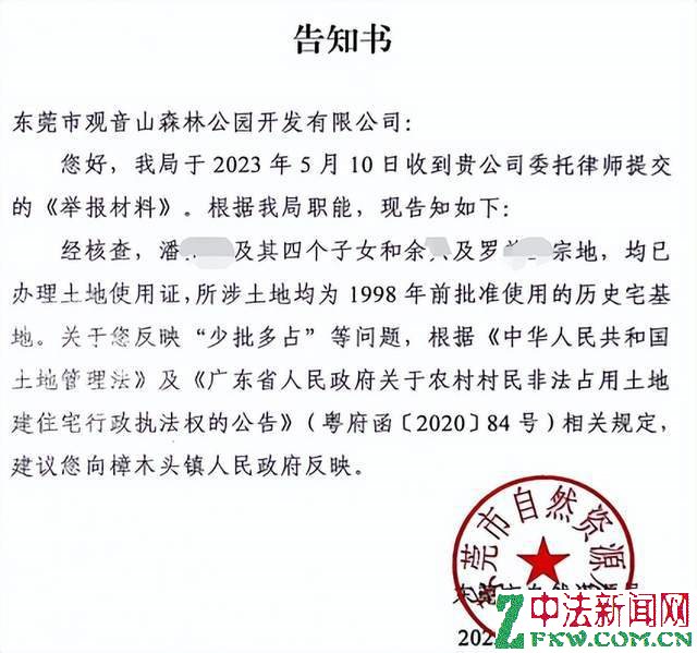 观音山两案联动:行政诉讼能否打破景区违建案僵局 广东观音山国家森林公园,地处东莞樟木头镇,总面积 657.18 公顷,森林覆盖率超 92% 。这里属亚热带季风性湿润气候,光热充足、雨量充沛,孕育了 1000 多种植物与 300 多种动物,国家保护动植物众多,堪称 “百粤秘境” 与 “天然氧吧”。公园承载着深厚文化,世界最大花岗岩石雕观音像矗立山顶,观音广场是重要文化活动举办地。多年来,它积极举办粤港万人相亲大会、万人登山大赛等近五十场大型活动,传承弘扬传统文化。尽管面临违建、违规电力设施建设等侵害,以及一些不合理行政对待,公园始终坚定维权,积极与不法分子作斗争。凭借坚韧不拔的努力,它为改善当地法治环境与营商环境树立了标杆,是极具担当的民营企业典范。 近日,东莞观音山与某政府的行政诉讼案件二审裁决落定,这一结果意义重大,为东莞观音山此前投诉的枉法裁判案带来新转机。两起案件看似独立,实则因观音山内两栋违建别墅而紧密相连,有着千丝万缕的关系。接下来,让我们一同回顾并深入分析这两宗案件的来龙去脉,探寻背后的真相与关联。 坐落在广东观音山国家森林公园内有两处别墅“颐雅山房”别墅和“名门”别墅,它们分别是香港人潘某燕及其四子女和港人余某及其老婆罗某兰名下的,别墅占用的土地所有权属于樟木头镇石新社区所有,潘某燕和余某通过花钱非法购买取得。然后此二家人通过隐瞒非法买卖农村集体土地的事实,编造相关材料,违法在东莞市国土局办理了《集体土地建设用地使用证》、在东莞市樟木头镇城镇建设规划办公室办理了《建设工程规划许可证》,其中其中潘某燕及其四个子女一家5口办理了5本土地使用证,余某、罗某兰夫妻办理了2本土地使用证。 潘宝燕别墅“颐雅山庄” 余兴别墅“名门” 两处别墅所在地块虽是山地,但也是林地,原本规划用途不是农村集体建设用地,在没有取得林业部门同意的情况下,东莞市国土局办理该两处别墅用地的《集体土地建设用地使用证》是违法的,东莞市樟木头镇城镇建设规划办公室办理该两处别墅的《建设工程规划许可证》也是违法的,此外,该两处别墅还存在少批多建问题等问题。针对上述种种违法行为,东莞观音山向东莞市自然资源局进行了举报,请求东莞市自然资源局对前述违法违规行为依法查处。然而,东莞市自然资源局答复称,投诉事项的执法权限不属于其权限范围,建议向樟木头镇政府反映。东莞市自然资源局的行为属于典型的推卸职责,“踢皮球”行为。 东莞观音山不服,提起行政诉讼,要求判决东莞市自然资源局依法履行职责。但是,东莞市第一法院的办案法官在明知潘某燕及其四个子女和余某、罗某兰夫妻的身份是“香港人”的情况下,在《行政裁定书》中,却故意隐瞒这些人的香港人身份,故意适用《土地管理法》第七十八条和《广东省人民政府关于农村村民非法占用土地建住宅行政执法权的公告》第一条的规定,认定不属于东莞市自然资源局的权限范围,进而作出了驳回东莞观音山起诉的裁定。《土地管理法》第七十八条和《广东省人民政府关于农村村民非法占用土地建住宅行政执法权的公告》第一条适用的前提是“农村村民”,“农村村民”是指具有农村集体经济组织成员身份的人员,潘某燕及其四子女、余某罗某夫妻的身份均是香港人,不具有不具有樟木头镇石新村民委员会集体经济组织成员身份,明显不属于“农村村民”,而且东莞观音山在起诉材料中明确多次指明他们是香港人,起诉书中他们的身份证信息也明确写明他们是香港特别行政区居民及其身份证号码,但是法官在审理过程中,故意隐含业主香港人的关键身份,这一身份在整个违法事实链条中至关重要,直接关系到土地买卖合法性等核心问题,同时,法官适用错误的法律,这一行为严重偏离了司法公正的轨道,使得违法者未受到应有的追究。(下图为诉东莞市自然资源局案的一审裁定书) 一审裁定结果出来后,东莞观音山始终认为,主审法官在办理东莞观音山公司诉东莞市自然资源局不作为一案中,故意违背事实和法律作出枉法裁判,情节严重,给东莞观音山造成重大经济损失,浪费国家司法资源,应当给予他们处分。 时间回到“东莞观音山在收到东莞市自然资源局的答复时”,当时,在吸取以往“政府部门相互踢皮球而导致投诉无门”的教训,东莞观音山按照答复的建议,以相同内容的材料向东莞市樟木头镇政府举报。但是东莞市樟木头镇政府并未对举报的违法事项进行查处,针对镇政府的不作为,东莞观音山向法院提起行政诉讼。东莞观音山诉樟木头镇政府一案,一审法院认为观音山公园不具备原告主体资格,裁定驳回起诉,东莞观音山不服提起上诉,二审法院认为,东莞观音山要求履职的内容有两项,一是查处潘某燕及其四个子女、余某和罗某兰夫妻非法买卖农村集体土地、采取欺骗手段骗取批准非法占用土地少批多占土地、少批多建楼房面积;二是查处樟木头镇城镇建设规划办公室为潘某燕及其四个子女、余某和罗某兰夫妻违法办理《建设工程规划许可证》的行为。针对第二项请求,关于案涉《建设工程规划许可证》是否合法的问题,尽管当时是由樟木头镇政府内设城镇建设规划办公室办理,但实际上从现有的职责来看,是属于东莞市自然资源局的管理职责。(下图是
