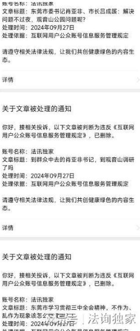 看看,为何这些文章都被你们投诉而删除呢?你们还是怕别人戳你们的脊梁骨呀! 而对于东莞市长吕成蹊的曝光也不少,2024年1月18日,法讯网等近百家媒体发布《东莞市委十五届第七次全会:解决问题不过夜,观音山呢》文章显示会议要求“各级各部门要进一步提振“想干、 敢干、会干”的精气神,看准了就干、干就真干,遇到问题就及时协调,大家一起想办法把事情办成办好。坚持协调不过夜、落实不过夜,全力以赴把各项工作往前赶,争分夺秒抢进度”这个关键词,但在在1月3日多家网站曝出的《东莞市樟木头镇镇长芦湛:年初说的逐步解决观音山问题,解决了吗》就可以看出落实不过夜就是一个天大的笑话!文末说:“欣赏一下观音山的美景吧,如果日理万机等肖书记和吕市长能抽空或者是在周末来散散步,和观音山人谈谈心,或者来个现场办公,先解决供电和编修问题,倒不失为一大幸事!如此,相信东莞的子孙后代日后也会念及为民做主的父母官!” 4月1日,法讯网再次发布《到群众中去的肖亚非书记,到观音山调研了吗》,5月6日发布了《书记市长都开了活动报道集 诚邀东莞市领导赴观音山调研工作》.看东莞市委书记和市长调研活动不停,会上大谈特谈民生问题,但很遗憾的是,他们都没有回应观音山,也没有回应读者的关心,更别说到观音山公园现场调研了!如此,令人不得不怀疑他们去的调研单位是否有什么不为人知的秘密?!