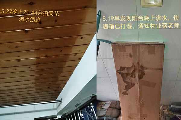 物业管理人员 包括4-2翁帮慧在内,任何人拿不出来阳台漏水的证据 荣昌区昌州街道板桥社区居民委员会党委副书记、综治专干唐顺利称:“我们前前后后去了五六次,我们是这么讲的,我们也不是专业的,跟五楼、四楼都说了,正常情况,只要楼上漏水下来都是楼上的责任,我们去四楼看,只有漏水的痕迹,最先以我个人的主观意见是,五楼洗衣机旁管子水流不赢满出来了就会浸下去,当时天花板还没有拆的时候,通过我们的工作经验,说五楼的下面管子周围的或是防水没有做好,年生久了。” 唐书记还称:“我们没有注水看,只有一次,看到阳台管子下方地面一层纸上有一滴水,天花板上有‘水雾’,管子周围有渗水痕迹,是干的,老印子,不晓得是哪个时时候的......我们不懂,都不是专业的。”