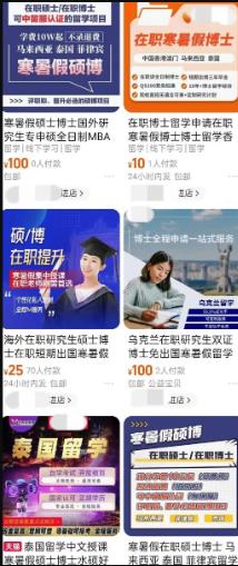 媒体起底“速成洋文凭”灰产链,专家:我们要给学历“祛魅” 学员参加海外留学项目,未能顺利毕业拿到学历,却各自经历了收费争议、学历无法认证、成绩存疑、数十万元高昂费用可能血本无归等糟心事。近段时间,读特新闻根据学员报料,对部分海外留学项目存在的诸多问题展开调查。 读特新闻记者在调查中了解到,部分学员、留学中介、项目合作院校等涉事各方,对于此类留学项目俗称“水硕”“水博”均是“你知我知”——这个行业从来不曾蒙过神秘的面纱,只是有套路深深的产业链,学员在进击“洋文凭”过程中,未能顺利“学有所成”的另一面必然就是消费争议。 “速成文凭”的泡沫为何总是戳不破?日前,中国教育科学研究院研究员储朝晖就读特新闻的系列报道接受采访,对这种现象背后的深层次问题进行分析。 状况频出的留学市场 留服中心频频“预警” 读特新闻记者在某第三方投诉平台用关键词“留学”检索发现,截至目前相关投诉5000多条,其中多数与“退款难”“虚假宣传”有关;用“学历”关键词检索,则投诉超过5万条。 企查查数据显示,国内现存留学中介服务相关企业31.1万家。近十年相关企业注册量呈整体增长态势,从经营时间来看,现存留学中介服务相关企业中,成立年限在1-3年的相关企业最多,占比34.94%。在10年以上的相关企业占比4.45%。从注册资本来看,相关企业多为轻量级,注册资本在100万元以内的相关企业占比47.74%。 去年7月至今年4月28日,教育部(中国)留学服务中心发布三次《关于对部分国外院校学历学位认证加强认证审查的公告》,启动加强审查程序共涉及法国、菲律宾、马来西亚、泰国等国家20多个海外院校。此外,教育部(中国)留学服务中心还发布多篇声明和提示,对冒充人员、仿冒身份以及委托中介代办认证而引发风险等情况进行说明。 教育部(中国)留学服务中心发布关于留学中介的提醒。 学术成长变商业交易促成灰产链 为什么海外留学市场问题频出?中国教育科学研究院研究员储朝晖接受读特新闻记者采访时表示,出现这种情况首先是社会对学历过高的崇尚导致。这使得一些用人机构在选拔人才过程中片面强调学历背景,忽视实际工作能力和岗位的匹配度,从招聘、任用到考核都缺少专业的评价。 另一方面,获取高质量的学历并非易事。若想获得被世界广泛认可或得到中国政府认可的学历,往往存在较高难度。部分人由于自身能力或其他资质条件限制,难以通过正规渠道获取这样的学历,于是转向其他替代途径,通过一些提供所谓“劣质学历”的机构达到目的。在这种供需矛盾下,这些有需求的人群与提供“劣质学历”的机构就构成了一个灰色产业链。 以东南亚院校提供“硕博连读”课程为例,储朝晖表示,“连读”原本是中国高校现行的一种计划性学历培养模式。部分海外院校,特别是东南亚地区的学校了解到国内部分人群有这方面的学历需求,于是加以“包装”,提供课程作业、实践练习、毕业论文等全流程服务。当事人不用付出多少实质性努力,只需出钱“购买”,就能获取这样一个“博士文凭”。 在储朝晖看来,这种做法已变成一种商业交易行为,而不是一个人的学术成长过程,完全偏离了学习教育的本质。 下一个灰产链或将出现 “水学历”现象并非仅是个人行为,部分院校等机构甚至以组团形式参与其中。此前记者采访留学中介时了解到,2020年至2023年疫情期间,部分留学中介推出“不用出境的留学项目”。 针对这一期间的留学乱象,教育部(中国)留学服务中心官网从2020年起,陆续发布关于对部分国外院校学历学位认证加强认证审查的公告,位于菲律宾、马来西亚、印尼、泰国、西班牙、蒙古、法国、新加坡等国的多所院校被点名。 “在教育部(中国)留学服务中心的相关措施下,一些学校也对此有所警惕,现在这个问题总体上减少了。但刚性需求还存在,产业链条也存在,那么它依然有可能变换一种形式再出现。”储朝晖表示。 储朝晖的警示,在市场上已经有一定端倪。记者在某电商平台发现,不少中介以“无需辞职”“网课就读”“短期出境”等为宣传噱头招揽生源,有中介直接用“寒暑假硕博”作为特定名词吸引关注。 电商平台上的留学中介广告打出“寒暑假硕博”字样。 何为“寒暑假硕博”?一家留学中介告诉记者,“本升硕”可通过短期出国留学硕士或中外合作办学硕士这两种渠道实现,毕业证书均可通过中留服学历认证。其中,短期出国留学硕士只需出境6个月,可分寒暑假两次短期出境。 另一家打着“在职寒暑假博士”广告的中介向记者推荐马来西亚一所私立院校,据介绍,该校在职博士就三门课,读满三年,“基本就是第一年寒暑假上课,第二三年也得去。不管做什么,联系导师改论文也好,玩也好,反正待那边。” 给学历“祛魅” 让评价体系更专业 储朝晖认为,过度聚焦文凭的评估方式,本质上属于形式化评估。总体上要建立更专业的评价和管理体系,给学历“祛魅”。 对于近年来不断被曝光的高校引进“人才”中存在“水学历”的情况,储朝晖认为,这是高校内部缺乏一套专业化、相对独立且具备实质性的评价体系。不管是哪一类高校,若过于片面地只将教师的学位文凭、职称、课题项目等难以体现其专业水平的要素作为衡量标准,都有可能陷入“水学历”的泥沼。要构建一个