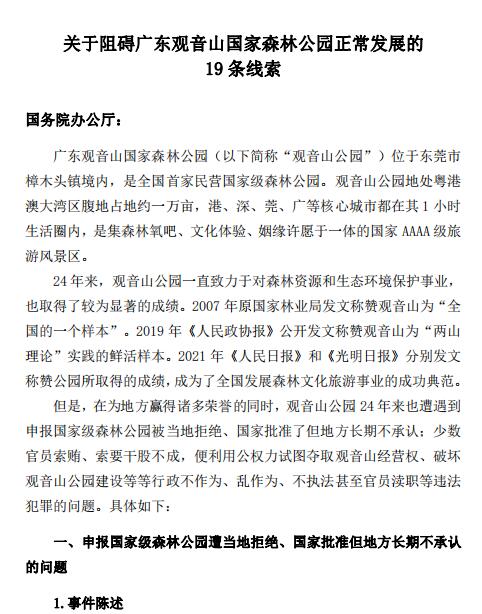 民营经济需要建设法治政府才有发展 --从全国第一座民营国家森林公园遭遇说起 独立撰稿人 李海波 此前撰稿人曾写过《民营企业合法经营才是王道--从广东东莞大力反腐看民营企业的发展之路》,撰稿人从广东东莞市反腐中来看民营企业守法的重要性2023年以来,已有多名曾在东莞任职的厅官被查。这些官员落马,也直接波及到东莞市不少的民营企业主。只有观音山公园的董事长黄淦波先生在这波反腐风暴独善其身,没有被波及到。身为东莞市企业联合会和东莞市企业家协会副会长的黄淦波从不行贿,就是遇到官员索贿他也是坚决拒绝,即使遇到领导们的多方面的无情打压也不动摇。 此次撰稿人还是以观音山公园遭遇为例,讲讲地方政府只有依法行政才能促进地方发展。 国家鼓励大力发展民营经济 强化民营经济发展法治保障 “民营经济是推进中国式现代化的生力军,是高质量发展的重要基础,是推动我国全面建成社会主义现代化强国、实现第二个百年奋斗目标的重要力量。” 民营经济是经济发展的重要力量,进一步激发民营企业活力,增强民营经济发展韧性,是推动我国经济长期向好的重要支撑。 为促进民营经济发展壮大,2020年7月19日中共中央、国务院发布了《关于促进民营经济发展壮大的意见》。 2023年7月14日,中共中央、国务院发布关于促进民营经济发展壮大的意见,以加大对民营经济政策支持力度,依法保护民营企业产权和企业家权益,着力推动民营经济实现高质量发展。此后中央各部委依据职责发布了依法保护民营企业产权和企业家权益政策,国家发改委及各地方也成立了民营经济促进局,以采取务实举措促进民营经济发展。 2025年2月17日,习近平总书记在京出席民营企业座谈会并发表重要讲话并强调,党和国家对民营经济发展的基本方针政策,已经纳入中国特色社会主义制度体系,将一以贯之坚持和落实,不能变,也不会变。 4月30日,十四届全国人大常委会第十五次会议表决通过民营经济促进法,自2025年5月20日起施行。民营经济促进法共9章78条,包括总则、公平竞争、投资融资促进、科技创新、规范经营、服务保障、权益保护、法律责任和附则。作为我国第一部专门关于民营经济发展的基础性法律,民营经济促进法将进一步优化民营经济发展环境,保证各类经济组织公平参与市场竞争,促进民营经济健康发展和民营经济人士健康成长,构建高水平社会主义市场经济体制,发挥民营经济在国民经济和社会发展中的重要作用。 一揽子政策精准发力,为民营经济发展增添新动能。 东莞知名民营企业观音山公园遭遇个别领导多部门打压 东莞知名民营企业观音山公园是1999年由东莞知名企业家接手烂摊子独自投入巨资逐步发展起来。东莞观音山公园原为樟木头镇石新村一无名荒山,90年代末在村干部经营不下去后多次找到民营企业家黄淦波接手,经过26年的发展,观音山公园从一座名不见经传的荒山,发展为集森林氧吧、文化体验、姻缘许愿于一体的国家AAAA级旅游风景区。观音山公园每年接待游客超百万,成为中国知名的网红打卡地,被誉为“南天灵秀胜境,森林康养福地。2005年12月23日,广东观音山国家森林公园经国家林业局批准成立,成为全国第一座民营国家森林公园。原国家林业局发文评价“广东观音山国家森林公园是全国的一块样板”、联合国授予“国际生态旅游示范基地”、国际生态安全旅游示范基地、联合国环境规划署授予“中国最具发展潜力的企业”、国际旅游联合会评定为“最美中国旅游目的地”、中国国土经济学会授予观音山景区“深呼吸旅游度假区”、国家旅游局评为国家4A旅游景区、中国休闲旅游最佳目的地、中国十佳休闲景区、广东人最喜爱的旅游目的地、 森林美景摄影地、粤港澳大湾区年度最佳生态旅游企业...... ![]() 因行业影响和社会贡献突出,观音山公园董事长黄淦波2007年3月和2008年3月及2012年3月,黄淦波同志作为特邀代表三次到北京参加“两会”......2013年10月,黄淦波获得中国绿化基金会、人民网、绿色中国年度焦点人物评选组委会、绿色中国杂志社联合颁发的“2012绿色中国年度焦点人物创新人物奖”。 观音山公园东莞的经济社会发展等方面的贡献也不小:公司年交税收千万元左右(如果不是当地有关部门在观音山2010年成为国家4A级旅游风景区后,门票还是按照当地政府强行的违法指导价实行2006年的45元至今不予调价的话,观音山年交税收会更多!)、其创新经营模式为服务城市生态环境高质量发展体现了民企担当、为东莞当地社会的经济发展、文明提升、文化繁荣、社会和谐等方面做出了巨大的贡献:景区直接带动300多位员工就业,带动当地数十个行业的发展,间接带动上千人就业和上万人改善生活...... ![]() 遭遇被撤出自然保护地名录,观音山公园向国家多部门反映情况 然而,观音山公园在发展中遭遇了难以想象的地方政府及绝大多数部门的通力打压,严重制约了观音山的发展,甚至是在扼杀民营企业。 ![]() 2023年8月8日,广东观音山国家森林公园向国务院办公厅致函反映阻碍正常发展的19条线索。 网络有曝光观音山26年来的发展伟绩,也有观音山在发展中遭受了多达23个非法侵害的惊心事件,且这些事件均是当地官员违法乱纪所造成的。 观音山在发展中由于坚持发展绿色生态旅游经济而不愿意被低