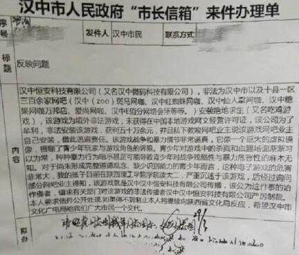 近日,有网友在微博爆料,汉中市政府接到了一封举报信,大二的孩子上学期间沉迷《绝地求生》 他以孩子沉迷游戏,影响学习为由,控诉《绝地求生》为境外非法游戏,该公司非法牟利五十余万 还提到了《绝地求生》战争、暴力情节逼真,对青少年产生了误导…… 如果市政府不制止的话会继续向省文化局反应。