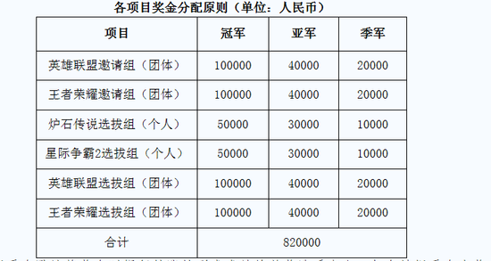 总决赛总奖金设为82万元(比赛项目包括星际争霸2、炉石传说、王者荣耀、英雄联盟)
