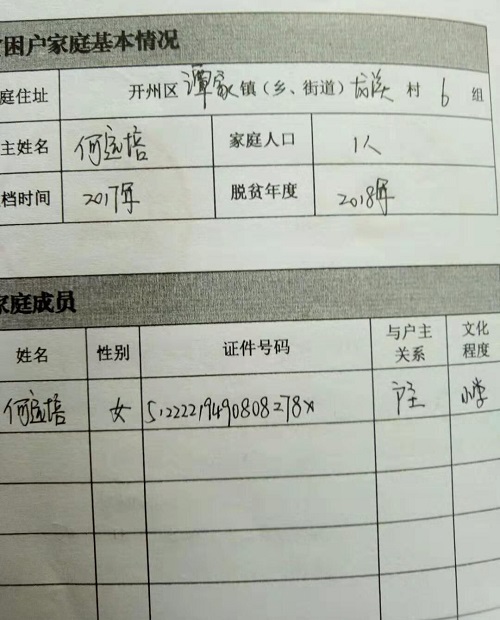 何远培的贫困户情况表