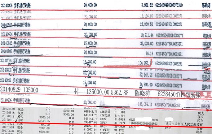 | 重庆荣昌:法官为畜牧局职工伙同学校教职工虚假诉讼一路开绿灯 简要:重庆市荣昌区畜牧局职工陈晓涛,伙同重庆市荣昌安富中学校教职工李铭,向重庆市荣昌区人民法院提起民事诉讼,请求判令李秉斐偿还借款20万元及利息,并承担本案诉讼费。判决生效后,李铭却又翻悔,声称自己不认识李秉斐,没有借钱给李秉斐...... 两张借条共计35万元,质疑被模仿手写 2014年3月2日,李秉斐急需资金周转,向陈晓涛出具了一张借条,金额20万元,限期两个月内还清。因为利息高,陈晓涛是重庆市荣昌区畜牧局一名职工,又是一名共产党员,就口头约定在借条外从本金中扣除利息4.7万元。陈晓涛还叫李秉斐在借条上添加了一个互不认识、又不在现场的李铭的名字。借条写好后,陈晓涛才到荣昌区农业银行柜台,先扣除利息4.7万元,再从自己账户(卡号:622845047,尾数未显示完,下称622845047)转存15.3万元到李秉斐农业银行账户(卡号:6228480471013843910,下称013843910)。交易日期时间是2014年3月2日11时48分58秒。 ▲李秉斐从农业银行渝中区支行打印出来的交易回执单 2014年5月4日,李秉斐因生意周转,又向陈晓涛出具了一张借条,金额15万元,限期两个月内还清。借条写好后,陈晓涛又到荣昌区农业银行柜台,按口头约定的先扣除利息6.6万元,再从自己账户(卡号:622845047)转存8.4万元到李秉斐农业银行账户(卡号:013843910)。交易日期时间是2014年5月4日16时43分02秒。 ![]() ▲李秉斐从农业银行渝中区支行打印出来的交易回执单 两张借条共计35万元,扣除利息11.3万元后,实际转款23.7万元。 根据《最高人民法院关于审理民间借贷案件适用法律若干问题的规定》第九条第二款以银行转账、网上电子汇款或者通过网络贷款平台等形式支付的,自资金到达借款人账户时。第二十九条第一款规定既未约定借期内的利率,也未约定逾期利率,出借人主张借款人自逾期还款之日起按照年利率6%支付资金占用期间利息的,人民法院应予支持。 由此,实际转款23.7万元+(本金23.7万元×年利率6%)1.42万元=应还款25.12万元。 李秉斐从2014年3月2日借第一笔款后开始还款:3月6日2万元、4月3日2万元、5月6日2万元、6月4日2万元、6月23日1.5万元、7月5日2万元、7月26日1.5万元、8月8日2万元、8月25日1.5万元、8月29日13.5万元、9月6日2万元,2017年5月26日荣昌区法院又执行了5.33万元,一共还了37.33万元。 已还37.33万元-应还25.12万元=多还12.21万元。 ![]() ▲李秉斐偿还给陈晓涛的37.33万元交易回执单 然而,陈晓涛手里还持有两张“借条”。第一张借条,内容是:今借到陈晓涛和李铭现金贰拾万元(小写:20万元)人民币,在2014年10月3日之前还清,借款人李秉斐,日期2014年8月3日;第二张借条,内容是:李秉斐因生意周转,向陈晓涛借现金拾伍万元整(小写15万元),在2014年10月24日前还清,借款人李秉斐,日期2014年8月24日。 李秉斐称:“除2014年3月2日、2014年5月4日我向陈晓涛借过两次钱后,再没有向他借过钱;陈晓涛现持有的2014年8月3日、2014年8月24日两张借条,我质疑被陈晓涛或他人模仿手写”。 ![]() ▲质疑被模仿手写的两张借条 双方打印出来的银行回单:同年同时同分同秒同金额,不同月不同日 陈晓涛为了证明自己多次给李秉斐借了钱,在再审庭审中举示了一张中国农业银行银行卡取款业务回单(卡号:622845047),显示:2014年1月3日,陈晓涛通过银行卡卡卡转账15.3万元到李秉斐农业银行账户(卡号:013843910)。该回单只有日期,没有交易时间。 ![]() ▲陈晓涛在再审庭审中举示的“中国农业银行卡取款业务回单” 然而,李秉斐委托诉讼代理人从荣昌区法院调取出来的陈晓涛2014年10月28日从中国农业银行股份有限公司重庆荣昌支行营业部打印出来的李秉斐的金惠借记卡明细对账单显示,李秉斐的农业银行账户(卡号:013843910)在2014年1月3日11时48分58秒转存了15.3万元,未显示对方账号、姓名。 ![]() ▲陈晓涛在农业银行荣昌支行打印出来的李秉斐的“对账单” 由于荣昌几家银行都拒绝调取刘赛君套路贷案件的对账单,2014年11月21日,李秉斐委托诉讼代理人就带上李秉斐到中国农业银行股份有限公司重庆市渝中区支行打印出来了一份账户(卡号:013843910)交易回执单,该账户2014年1月3日未显示陈晓涛所谓2014年1月3日11时48分58秒的15.3万元转款,而是在2014年3月2日11时48分58秒(借条:金额20万元)转存的15.3万元。同年、同时、同分、同秒、同金额;就是不同月、不同日。 ![]() ▲李秉斐从农业银行渝中区支行打印出来的交易回执单 李秉斐从农业银行渝中区支行打印出来的交易回执单显示:2014年5月4日16时43分02秒,(借条:金额15万元)陈晓涛(未显示卡号)通过柜台向李秉斐账户(卡号:013843910)转款8.4万元。 ![]() ▲李秉斐从农业银行渝中区支行打印出来的交易回执单 然而,陈晓涛从农业银行荣昌支行营业部打印出来的李秉斐的金惠借记卡明细对账单显示,又是在2014年4月24日16时43分02秒李秉斐农业银行账户(卡号013843910)转存了8.4万元,未显示转款人姓名和卡号。又是同年、同时、同分、同秒、同金额;不同月、不同日。 ![]() ▲陈晓涛在农业银行荣昌支行打印出来的李秉斐的“对账单” 李秉斐从农业银行江北区支行打印出来的回执单还显示:2014年8月29日10时50分00秒,李秉斐通过网银转账给陈晓涛账户(卡号:622845045)还款13.5万元。 ![]() ▲李秉斐从农业银行渝中区支行打印出来的交易回执单 然而,陈晓涛从