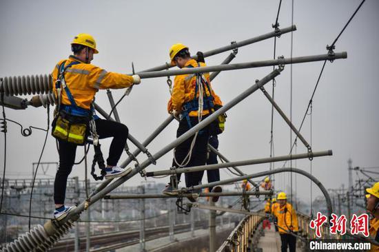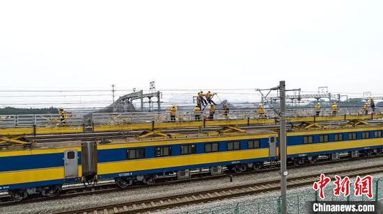 ![]() 1.7米宽的作业平台能容纳多人同时作业。 王以照 摄 ![]() 50余名职工分成若干的小组,同时对多个设备进行维护,小组单次作业仅需不足15分钟。 王以照 摄 ![]() 搭载可举升平台的检修车能大大提升工作效率。 王以照 摄 ![]() 工人正在对顶部的接触网进行检修。 王以照 摄 ![]() 挂满安全绳,正在对接触网进行检修的铁路职工。 王以照 摄 ![]() 黄色的检修列车正在对铁路接触网进行检修。 王以照 摄 ![]() 检修职工等待检修列到来。 王以照 摄 ![]() 进行施工时,工人必须保证两个安全扣同时系好,以保证安全。 王以照 摄 ![]() 铁路职工对接触网臂进行检修。 王以照 摄 ![]() 铁路职工使用扳手对螺帽进行紧固。 王以照 摄 1月9日春运前一日,中国铁路南宁局柳州供电段的一列218米长的检修专列,载着50余名铁路职工驶上桂林市的铁路枢纽,对给火车供电的接触网进行检修,确保春运安全。该车配备175米长的作业平台,能一边开进一边检修,像“贪吃蛇”一般吞噬隐患,检修效率比一般轨道车提升5倍,且配备休息车、炊事车和餐车,如可移动的小镇一般,能满足野外作业需求,减少工人劳累。据了解,2020年春运较往年提前近半个月,铁路供电部门抓住一切天窗期进行检修,确保春运期间设备正常运行。 |