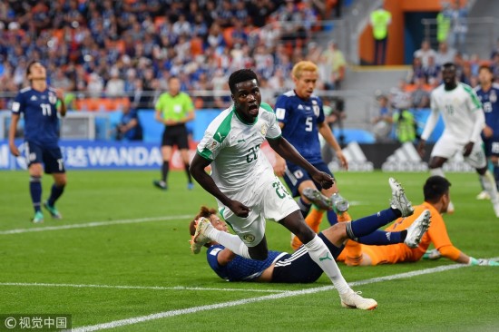 北京时间6月24日,世界杯H组小组赛,日本vs塞内加尔,比赛第70分钟,塞内加尔球员瓦古塔接队友传球,插上一脚补射破门。 |