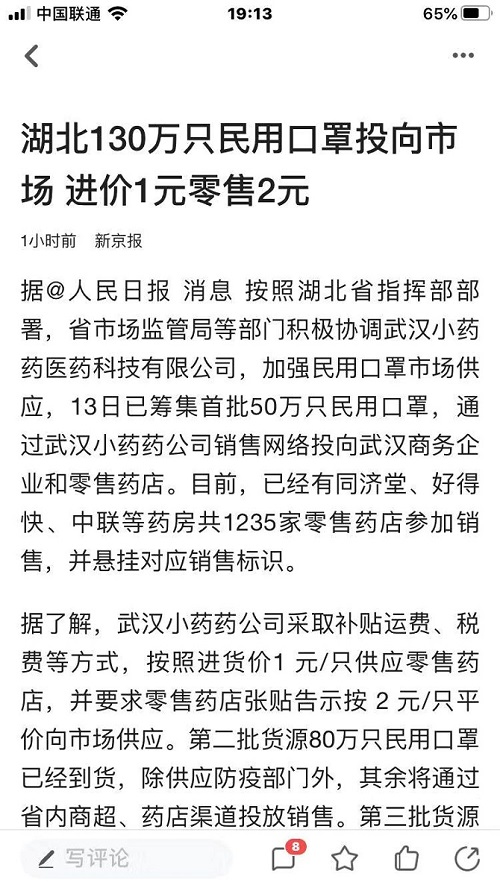 湖北,你是在侮辱国民的智商还是? 独立撰稿人 李海波 据人民日报报道:按照湖北省指挥部部署,省市场监管局等部门门]积极协调武汉小药药医药科技有限公司,加强民用口罩市场供应,13日已筹集首批50万只民用口罩,通过武汉小药药公司销售网络投向武汉商务企业和零售药店。目前,已经有同济堂、好得快、中联等药房共1235家零售药店参加销售,并悬挂对应销售标识。据了解,武汉小药药公司采取补贴运费、税费等方式,按照进货价1元/只供应零售药店,并要求零售药店张贴告示按2元/只平价向市场供应。 那你们可知道,就在一天前的报道里你们湖北的洪湖市还处罚了一家药店的事情?在2月12日的报道《湖北一药房被罚:将0.6元进价口罩卖1元 涉嫌哄抬价格》据湖北洪湖市委宣传部微信公众号“今日洪湖”消息:2月5日,洪湖市市场监督管理局对洪湖市华康大药房涉嫌哄抬口罩价格行为立案调查。经查,洪湖市华康大药房销售-次性口罩38000个,购进价格0.6元/只,销售价格1元/只,其购销差价额高过《省市场监管局关于新型冠状病毒感染的肺炎防控期间有关价格违法行为认定与处理的指导意见》(鄂市监竞争[2020]3号)文件规定的15%标准,涉嫌哄抬价格。目前,洪湖市市场监督管理局已对该案调查终结,没收违法所得14210元,罚款人民币42630元。 网友也在说执法有问题啊! 评论都说洪湖市华康大药房是良心商家啊! |