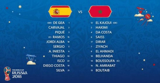 西班牙将战摩洛哥 北京时间6月26日02:00(加里宁格勒当地时间25日21:00),2018年世界杯B组末轮一场比赛在加里宁格勒球场展开角逐,西班牙对阵摩洛哥。 西班牙在1961年世界杯预选赛附加赛中双杀摩洛哥。西班牙近22场比赛保持不败,本场比赛保持不败将确保小组出线,蒂亚戈轮换卢卡斯出场。摩洛哥近15场世界杯赛事仅胜2场,但2场比赛均在小组赛末轮取胜,赛斯轮换贝纳蒂亚出场。 提前出局的摩洛哥并未消极放弃比赛。N-阿姆拉巴特对拉莫斯犯规险些引发冲突。随后卡瓦哈尔回传失误,皮克双腿飞铲布塔伊布又引来摩洛哥球员的激烈抗议。摩洛哥第14分钟取得领先,拉莫斯和伊涅斯塔后场让球失误,布塔伊布单刀突入禁区内14码处推射,皮球从德赫亚双腿间穿过入网。这是摩洛哥自1998年以来的首粒世界杯进球。