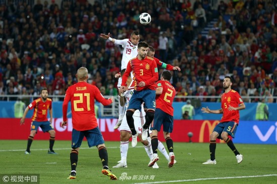 北京时间6月26日,世界杯B组小组赛,西班牙vs摩洛哥,下半场比赛,摩洛哥获得本场比赛第一个角球,角球直奔禁区开出,前锋恩内斯里力压西班牙队长拉莫斯将球顶进球门。 |