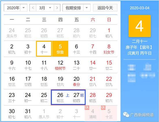 来源 广西壮族自治区人民政府办公厅 今天 ,广西壮族自治区人民政府办公厅发布关于调整2020年“壮族三月三”假期安排的通知,通知提到:根据新冠肺炎疫情防控工作需要,经自治区人民政府同意,调整2020年“壮族三月三”假期安排有关事项如下: 一、2020年“壮族三月三”假期,即3月26日、27日(农历三月初三、三月初四),全区机关及企事业单位照常上班。3月28日、29日(星期六、星期日)正常休息。 二、各单位给予相应的补休,不能补休的按照国家规定给予补助。 三、各地各部门要严格落实《广西壮族自治区新冠肺炎疫情防控三级应急响应工作指导意见》(桂新冠防[2020]11号)精神,继续暂停群体性文艺演出、体育赛事、庙会等大型公共活动和群众聚集性活动,确保疫情不出现反弹。