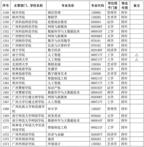 日前,教育部发布了关于2019年度普通高等学校本科专业备案和审批结果的通知(教高函〔2020〕2号)。根据公布结果,2019年度各高校新增备案本科专业1672个,新增审批本科专业181个,调整学位授予门类或修业年限专业47个,撤销本科专业367个。 ![]() 通过对教育部公布的名单进行整理发现,广西新增备案本科专业57个,新增审批本科专业7个、撤销本科专业13个。 2019年度普通高等学校本科专业备案和审批结果 广西新增备案本科专业名单 ![]() ![]() 广西新增审批本科专业名单 ![]() 广西撤销本科专业名单 ![]() 来源:教育部网站 |