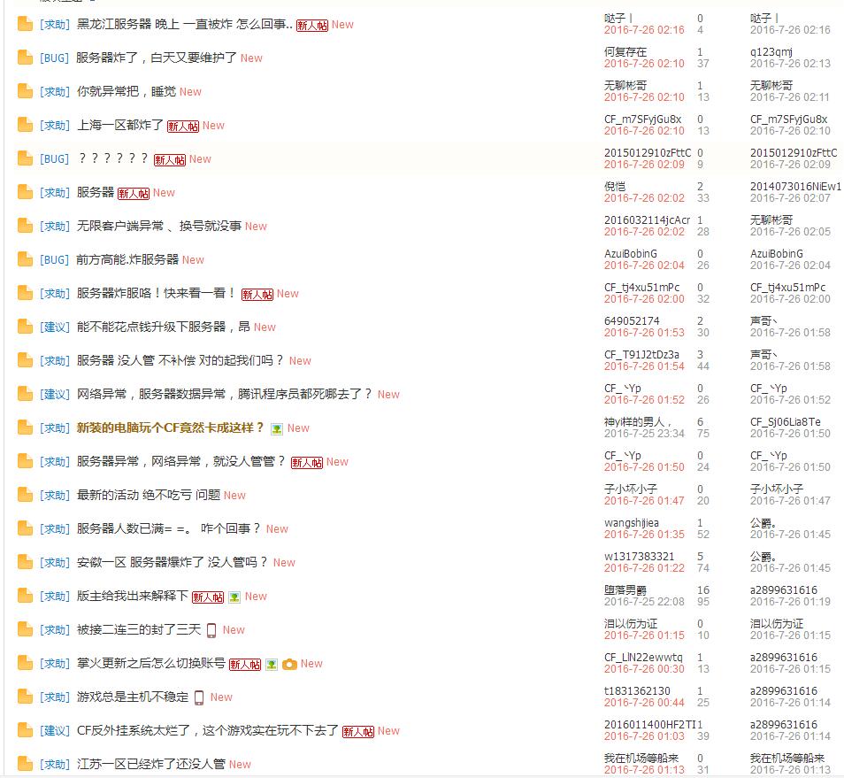 先上官方论坛炸锅图 全区基本被炸出翔!叫骂声不断。