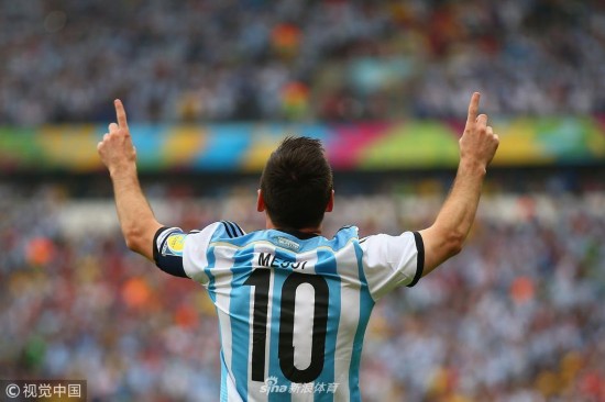 2014年6月25日,巴西贝拉里奥球场,2014巴西世界杯小组赛F组,尼日利亚Vs阿根廷。 梅西在打入球队首粒进球后庆祝 |