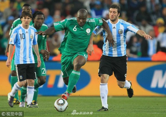 2010年6月12日,南非约翰内斯堡,2010世界杯B组小组赛,阿根廷Vs尼日利亚。海因策与雅库布。
