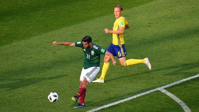 阿尔瓦雷斯自摆乌龙 瑞典第74分钟锁定胜局,替补出场的特林前点头球后蹭,阿尔瓦雷斯近距离在托伊沃宁紧逼下解围踢空,皮球打在他腿上反弹入左下角,3-0。第81分钟,科罗纳传中远点,埃尔南德斯禁区左侧小角度凌空扫射,贝拉近距离顶空门偏出。 瑞典3球领先已让比赛再无悬念,看台上的墨西哥球迷纷纷掏出手机收看德国同韩国的赛况,韩国在伤停补时进球让墨西哥球迷欣喜若狂。墨西哥球员齐聚球场内等待最后结果。最终德国爆冷输球,墨西哥输球仍获得小组第二晋级。