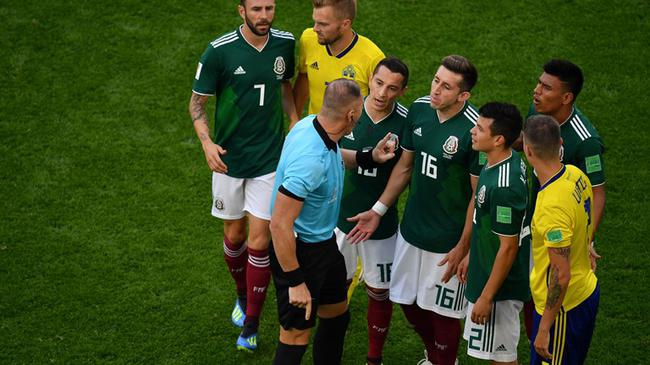 裁判拒判墨西哥点球 第30分钟,瑞典球员投诉埃尔南德斯禁区内手球犯规,但裁判检视回放后拒绝判罚点球。瑞典主帅安德森在场边激烈抗议。1分钟后,卢斯蒂格角球混战中钩传门前,贝里小禁区边缘凌空捅射被奥乔亚托出横梁。克拉松传中,福斯贝里16码处凌空扫射打飞。埃尔南德斯分球,贝拉切入禁区右侧劲射偏出。伤停补时,贝里突入禁区左侧射门打在边网。