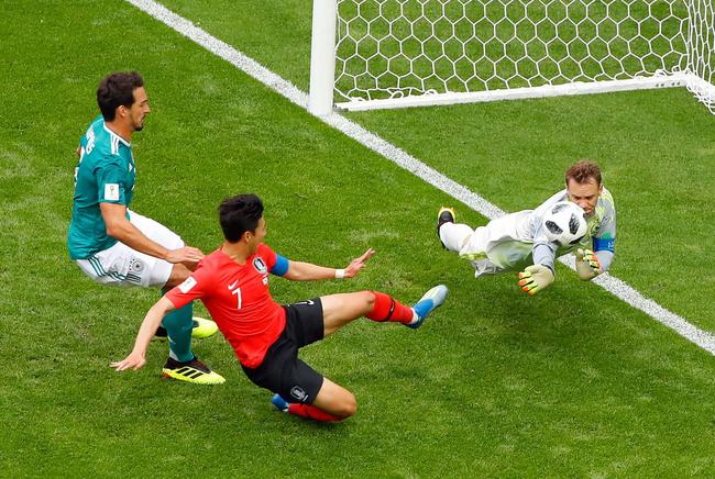 北京时间6月27日22时(俄罗斯当地时间17时),世界杯F组末轮在喀山开始1场较量,卫冕冠军德国0比2负于韩国,积3分小组垫底出局!上半时,孙兴慜错过两次得分机会。下半场,赵贤祐神勇扑出戈雷茨卡头球。补时阶段,金英权进球被判越位后又改判有效,孙兴慜反击再下一城。详情>> |