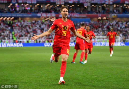 比利时1-0英格兰 北京时间6月29日凌晨,2018年俄罗斯世界杯G组末轮,比利时在加里宁格勒体育场1比0小胜英格兰,以3战全胜战绩获得小组头名,英格兰获得小组第二,两队携手晋级16强。1/8决赛中,比利时将对阵日本,英格兰的对手则是哥伦比亚。第51分钟,贾努扎伊打入全场唯一入球。 这本来被认为将会是一场充满看点的大战,但在两队均以提前出线和死亡半区已经形成的情况下从某种程度上讲竟成为了一场谁都不想取胜的比赛,两支球队首发的22人中有17人是替补,一场波澜不惊的1-0,比利时队拿到小组第一,但是也将自己送进了拥有乌拉圭、葡萄牙、法国、阿根廷和巴西五大冠军的死亡半区。 本场双方均对首发阵容进行了超大轮换,英格兰更换8人,仅有皮克福德、斯通斯和洛夫图斯-奇克继续首发,凯恩替补待命。而比利时更换9人,只有库尔图瓦和博亚塔依旧首发,埃登-阿扎尔、德布劳内都获得轮休机会。 整场比赛双方都没有创造出太多的机会,唯一的进球出现在第51分钟,比利时队由蒂勒芒斯送出助攻,贾努扎伊禁区右翼假动作晃开罗斯防守后一脚爆射,球打入球门左上角,比利时1比0取得领先,昔日的曼联天才也完成了自己在世界杯的首球。