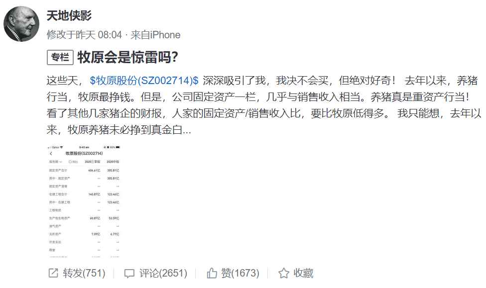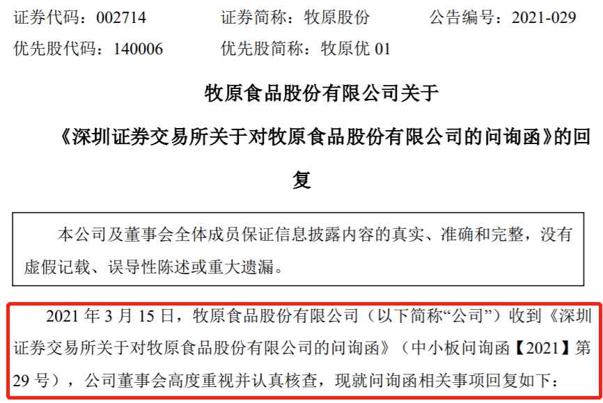 | 投资研报 【新能源汽车每日动见】暴增400%!这只股业绩预告透露行业重要信号 【硬核研报】库存又超预期下降?机构高喊“顺周期王者”产能利用率已破100%,量价齐升的弹性标的还有62%涨幅空间 【碳中和动态分析】2035年远景目标纲要要求大力提升清洁能源发电规模;晶盛机电获中环股份20.8亿订单 【硬核研报】新增产能被限制,价格天花板因素解除,“化工之母”跳出库存周期,迎来持续2年以上景气周期(名单) 原标题 正面刚!4000亿“猪茅”回应六大质疑,15万股东可以安心了?高毛利率、巨额关联交易…都有交代 ![]() 刚刚,牧原股份正面回应所有质疑。 3月16日晚间,牧原股份回复了《深交所关于对牧原股份的问询函》,其在回复中非常有针对性地回应了市场关心的焦点问题:高毛利率、大量工程关联交易、少数股东ROE远低于母公司股东ROE等。 ![]() 而在此前,雪球大V“天地侠影”曾发文公开质疑牧原股份,引发市场激烈讨论,质疑的问题主要围绕固定资产/销售收入比远高于其他猪企;少数股东ROE远低于母公司股东ROE;实际利润被控股股东旗下的建筑公司获取等。 本周的前2个交易日,牧原股份股价均绿盘报收,累计跌幅为5.76%,总市值也已跌破4000亿大关降至3815亿元。 牧原股份回应质疑,15万股东吃下“定心丸”? 经过市场激烈讨论后,3月15日,牧原股份受到深交所问询,3月16日晚间,牧原股份正面回应了市场关注的所有质疑问题,让15万股东吃下“定心丸”。 回应质疑一、固定资产占销售收入比重远高于同业。 针对“固定资产占销售收入的比重远高于同行业”的问题,牧原股份回复表示,公司的生猪养殖主要采用“全自养、全链条、智能化”模式,而同行业上市公司多采用代养模式,相对具有“轻资产”的特点,而全自养模式需公司自主投资建设生猪养殖场。故与同行业上市公司相比,公司固定资产占营业收入的比例较高、固定资产周转率较低。 ![]() 回应质疑二、生猪养殖毛利率明显高于其他上市猪企。 对于生猪养殖毛利率明显高于其他上市猪企,牧原回应称,主要原因系与种猪与仔猪来源、生猪产品结构和生猪养殖方式等存在差异,在生猪产品中,种猪、仔猪的毛利率明显高于商品猪的毛利率,而公司的种猪、仔猪销售量比例较大。 回应质疑三、与关联企业牧原建筑存在大量关联交易。 另外,关于质疑的焦点问题“与关联企业牧原建筑存在大量关联交易”,牧原股份给出了详细的回应,公司与牧原建筑之间发生的关联采购占当期采购总额的比例较低,均低于20%,且经过对比,牧原建筑承建的猪舍单方造价与非关联方建筑公司承建的猪舍单方造价差异率较小,牧原建筑承建猪舍的关联交易价格是公允性的。 ![]() 回应质疑四、少数股东ROE远低于母公司股东ROE。 同时,在回复函中,牧原股份回应了少数股东ROE远低于母公司股东ROE的质疑,其表示,主要原因系公司与华能贵诚信托、中央企业贫困地区产业投资基金等战略投资者合资成立的子公司均是在2019年末开始成立的,项目投资规模较大,但该部分子公司生猪养殖场的建设与产能形成需要一定的时间,故导致少数股东权益较大但少数股东损益较低,加权平均少数股东净资产收益率低于加权平均母公司股东净资产收益率。 回应质疑五、大存大贷。 最后,牧原股份对“大存大贷”的质疑也给出了回应,货币资金余额较高的主要原因是,业绩大幅增长导致经营性现金流量净额较大;为了扩大生产与建设规模、满足四季度集中采购和工程款支付的需求,公司通过增加银行借款的规模适当增加了现金储备量。 回应质疑六、短期借款和长期借款大幅增长。 关于短期借款和长期借款大幅增长的原因,牧原在公告中表示,公司生猪养殖采用“全自养、全链条、智能化”养殖模式,生猪养殖场区的扩建需投入大量的资金;另外,四季度是公司原料集中采购季节和工程款集中支付时段。 关于“猪茅”,一场刷屏的激烈辩论 牧原股份被深交所问询的“导火索”是,上周末的雪球大V“天地侠影”的一篇质疑文章。 3月13日(上周六),“天地侠影”发表了《牧原会是惊雷吗?》一文,对“猪茅”牧原股份提出多项质疑,其中包括:固定资产/销售收入比 ,远高于其他猪企;公司少数股东ROE远低于母公司股东ROE;实际利润被控股股东旗下的建筑公司获取等。 ![]() 文章发布后,“天地侠影”继续就牧原股份密集发表了诸多观点,质疑的点主要在于: 1、牧原股份的固定资产太高,几乎与销售收入相当,固定资产/销售收入远高于同行业其他上市公司; 2、牧原股份与控股股东旗下建筑公司存在大量的关联交易(过去两年约190亿元),质疑关联企业牧原建筑从上市公司赚了大钱; 3、少数股东ROE远低于母公司股东ROE,少数股东的ROE仅为13.98%,而归属母公司股东的ROE却高达47.88%,相当于这些少数股东在同上市公司做不挣钱的合伙生意。 这篇文章发布后,在资本圈引发激烈辩论,评论数量超2600条,参与讨论的更是不乏职业投资人、券商分析师等。 其实,经过周末的激烈讨论,该大V的质疑的主要问题都已经讨论清楚了。 首先,关于牧原股份的固定资产/销售收入占比过高的问题,有投资者在评论中表示,这是由牧原的重资产养猪模式决定的,从饲料厂到繁殖猪仔再到养猪场,牧原全部亲自下场,布局全产业链,而温氏股份等其他猪企,主要是外包养殖模式。 其次,关于少数股东ROE过