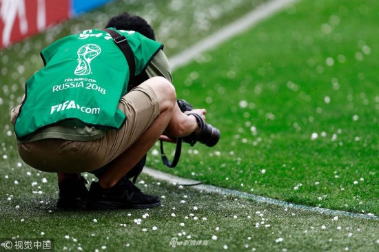 2018年6月26日,俄罗斯喀山,2018俄罗斯世界杯第13日,喀山天气突变,冰雹大小如乒乓球。