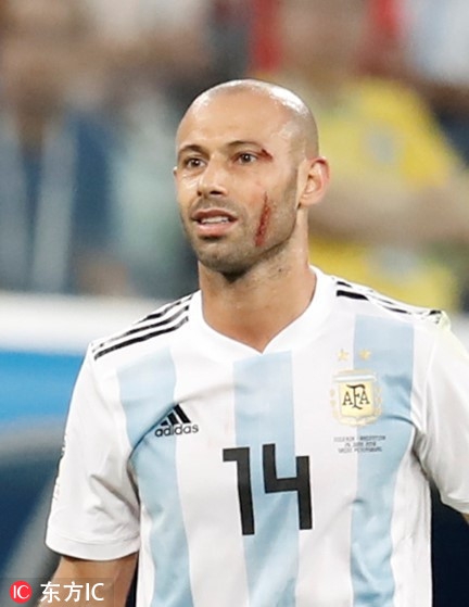 当地时间2018年6月26日,俄罗斯圣彼得堡,2018世界杯小组赛D组,尼日利亚1-2阿根廷。小马哥血染赛场。
