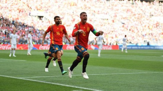 拉莫斯庆祝进球 北京时间7月1日22:00(莫斯科当地时间17:00),2018年世界杯1/8决赛第三场比赛在卢日尼基球场展开角逐,西班牙4比5不敌俄罗斯,伊格纳舍维奇自摆乌龙,久巴点球扳平。双方120分钟内1-1战平。点球大战,西班牙3-4落败出局。 俄罗斯此前6次对阵西班牙仅2平4负未尝胜绩,其中双方去年11月曾在圣彼得堡3比3战平。西班牙小组赛1胜2平夺头名出线,但此前4次在大赛中对阵东道主从未取胜,纳乔、科凯和阿森西奥轮换出场。俄罗斯在最后一场小组赛失望落败,库兹亚耶夫、戈洛文、日尔科夫和费尔南德斯轮换出场。 俄罗斯开场后压缩防守空间坚持稳守反击,西班牙则耐心控球寻找机会。西班牙第11分钟取得领先,日尔科夫对纳乔犯规,阿森西奥右路任意球传中,伊格纳舍维奇背对来球防守拉莫斯,皮球打在俄罗斯后卫腿上偏转入网。38岁352天的伊格纳舍维奇成为世界杯中打入乌龙球最年长球员。这也是俄罗斯第4次定位球失分。
