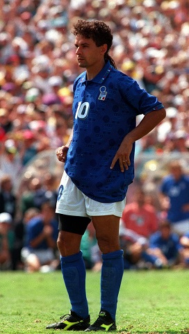 1994年美国世界杯决赛:巴西0:0(点球3:2)胜意大利 功臣巴乔罚失最后点球 意大利队巴雷西错失点球后跪在地上。
