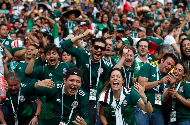 6月17日,墨西哥队球迷庆祝球队获胜。当日,在俄罗斯莫斯科进行的2018俄罗斯世界杯足球赛F组小组赛中,墨西哥队以1比0战胜德国队。(新华社/欧新) 就像他们的新总统敢于“叫板”传统政治势力一样,墨西哥人期待着今晚,在球场上,“带给你真正变革的可能性”。 |