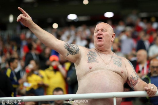 北京时间7月4日,世界杯1/8决赛最后一场比赛,英格兰vs哥伦比亚,赛前,一位看台上的英格兰球迷十分引人眼球。 |