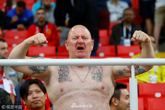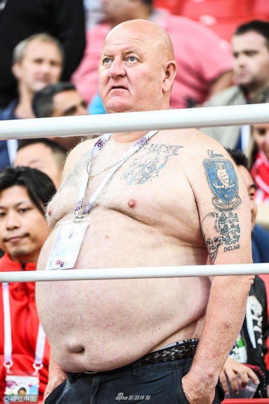 北京时间7月4日,世界杯1/8决赛最后一场比赛,英格兰vs哥伦比亚,赛前,一位看台上的英格兰球迷十分引人眼球。
